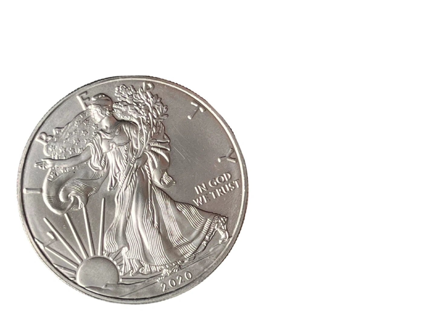 This is a 2020 American Silver Eagle coin. It's made of 1 oz of fine silver. This coin is part of the United States Mint's American Eagle Bullion Program. It is of the Lady Liberty 🗽 Mint condition unpolished