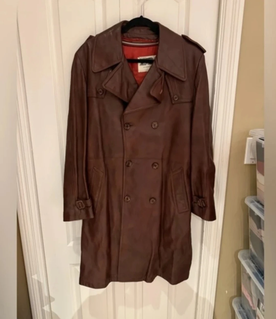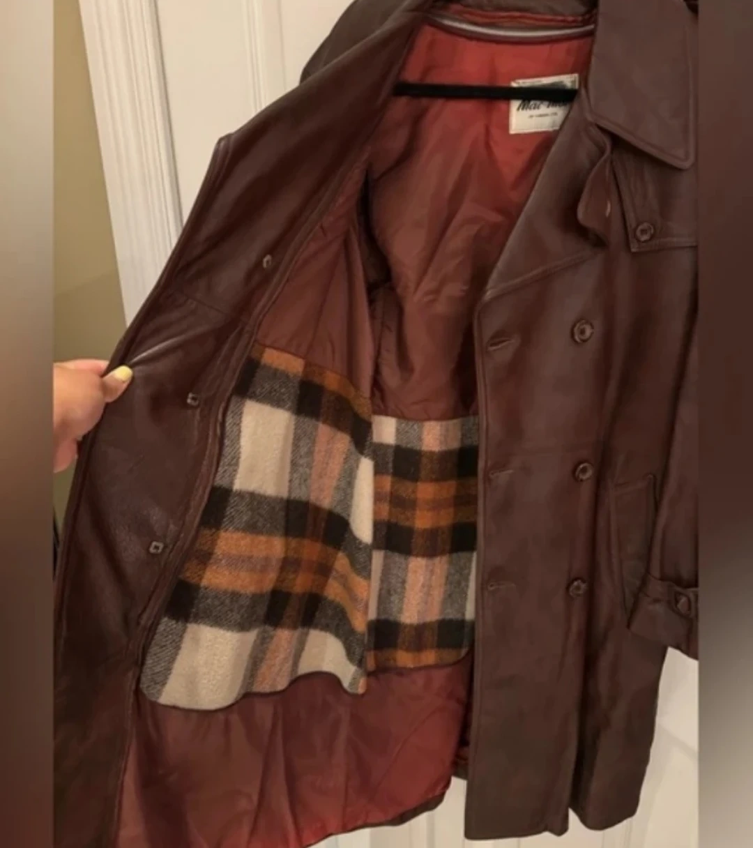 Buy & SellWomen's Leather Trench CoatWomen's Leather Trench Coat$200Elegant brown leather trench coat with a plaid wool lining. This coat is great for staying warm in cooler weather. US 12.ConditionGoodSizeUS 12WHERE TO MEET63 Widdicombe Hill BlvdView MapSELLERverifiedCamilleRichview681 review0 chats·0 favorites·5 viewsSEND CHAT TO SELLERHi Camille! I’m interested in your listing.Hi Camille! I’m interested in your listing.Get the Karrot app to chatSign In to chat
