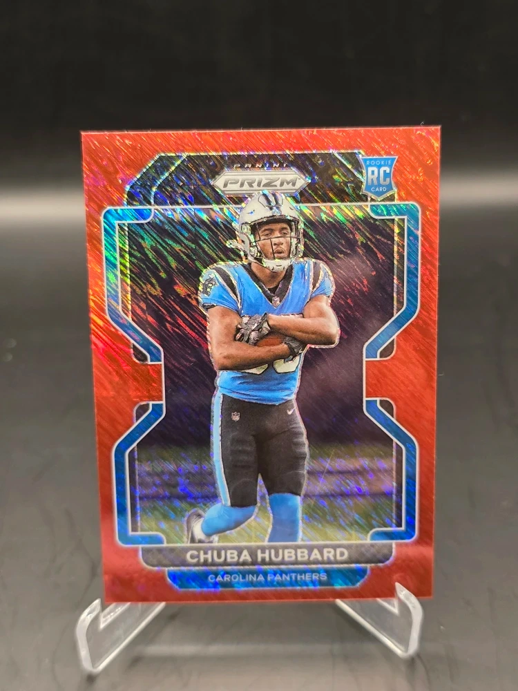Selling a collection of Chuba Hubbard Carolina Panthers trading cards, includes Red Shimmer /35. These cards are in great condition and would be a great addition to any sports card collection! Check out the photos for details