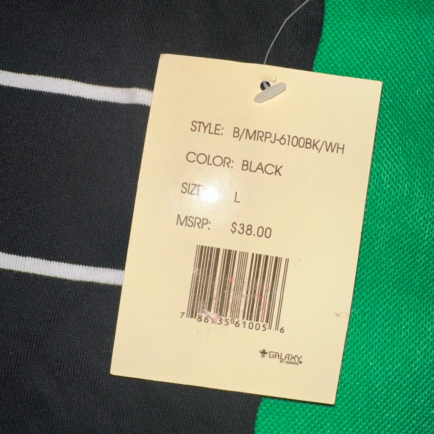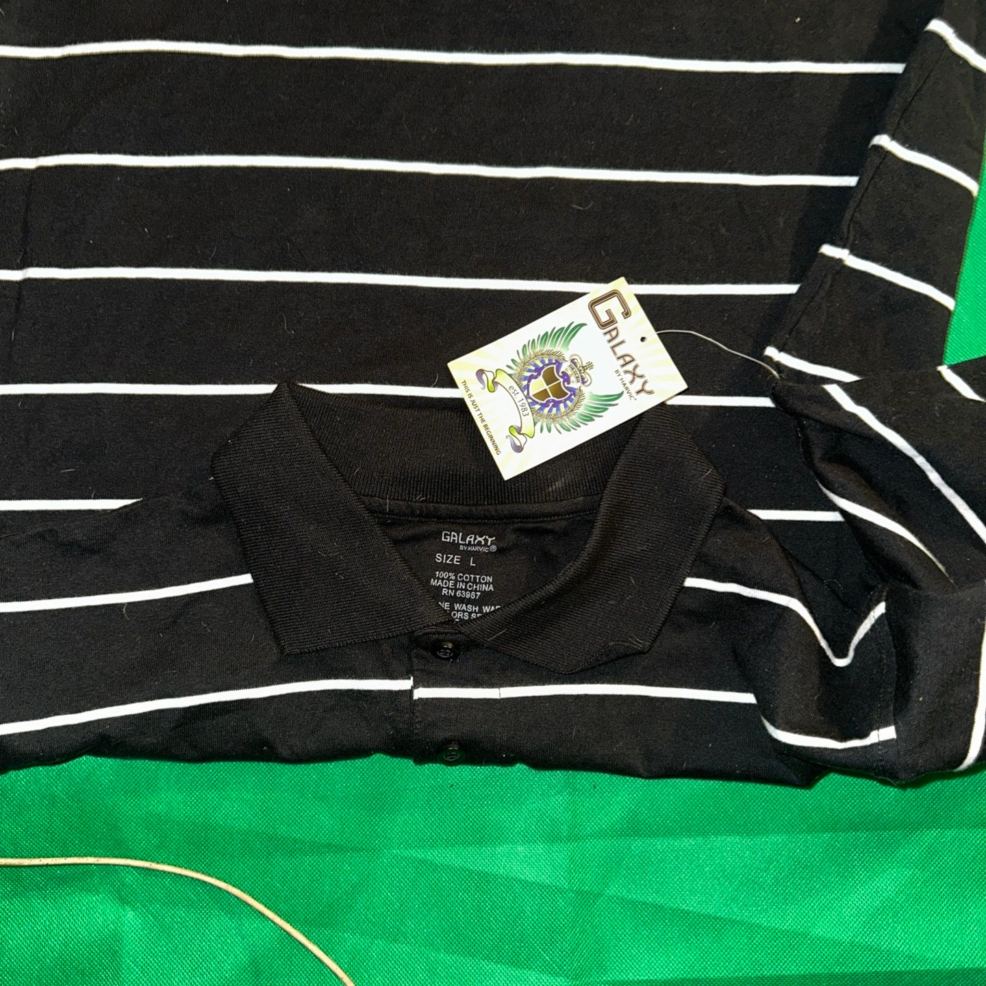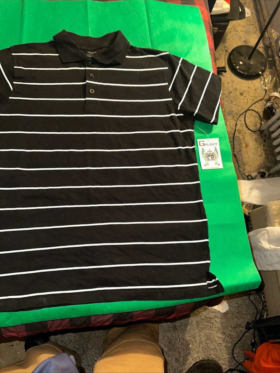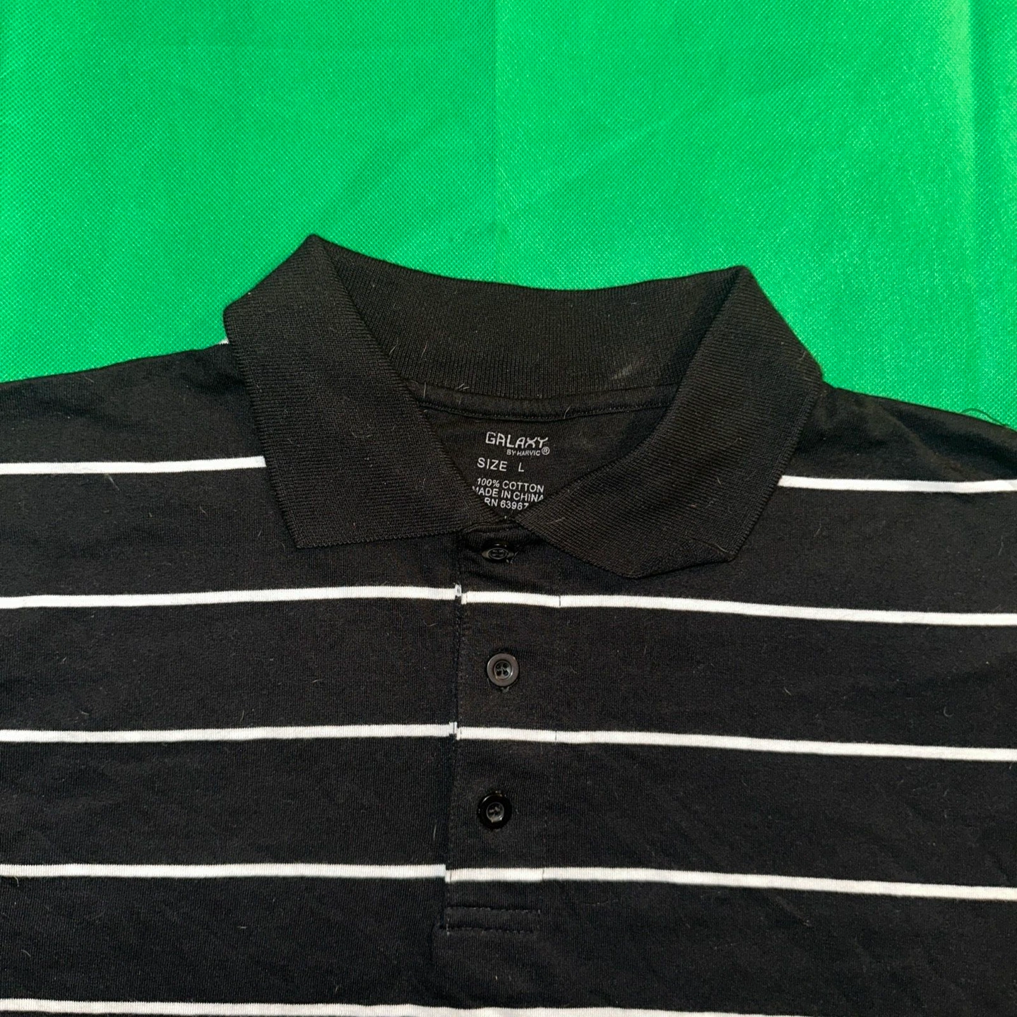 Galaxy Polo Shirt Mens L Black Striped Golf Short Sleeve