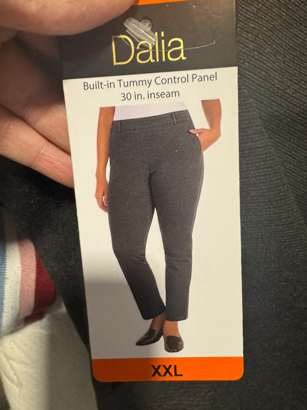 These Dalia women's pants feature a built-in tummy control panel. They have a 30-inch inseam and come in a size XXL. Made with a comfortable, stretch fabric.