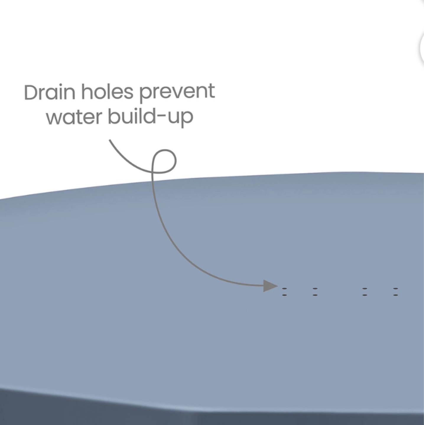* Drain holes prevent water build-up