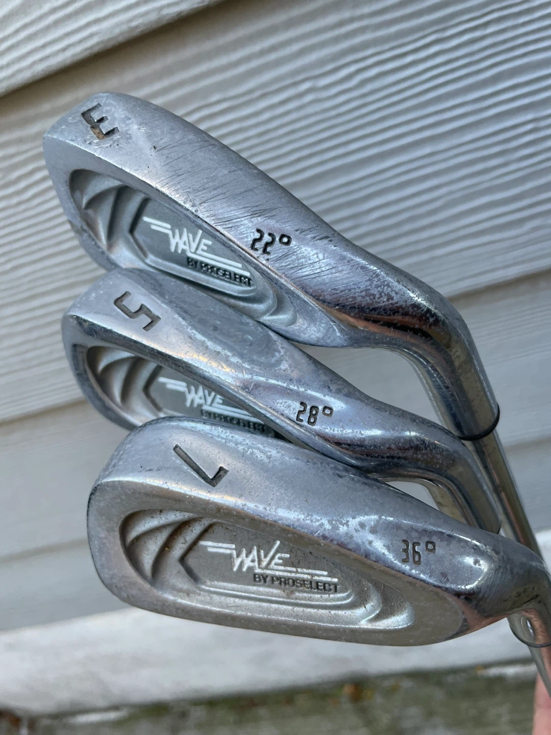 Selling a set of Wave by ProSelect golf clubs. Includes a 3, 5, and 7 iron, as well as a driver. They've been used but are still in good shape!