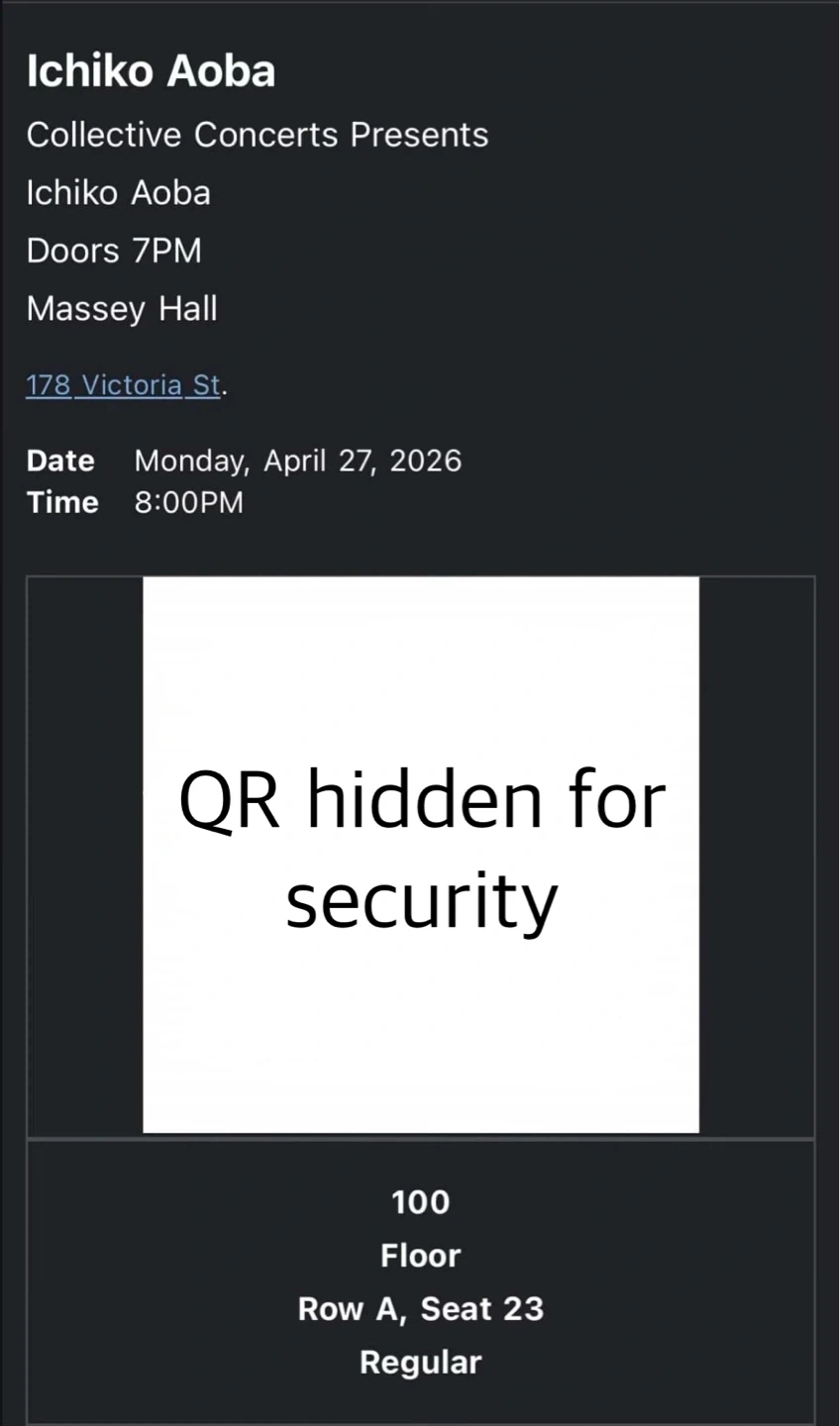 Buy & SellIchiko Aoba ticket TorontoIchiko Aoba ticket Toronto$125Selling an Ichiko Aoba ticket Front row (A23) Massey Hall Toronto (27 Apr) Open to offers Message if interestedWHERE TO MEETCheck LocationView MapSELLERverifiednatCity Center650 reviews0 chats·0 favorites·18 viewsSEND CHAT TO SELLERHi nat! I’m interested in your listing.Hi nat! I’m interested in your listing.Get the Karrot app to chatSign In to chat