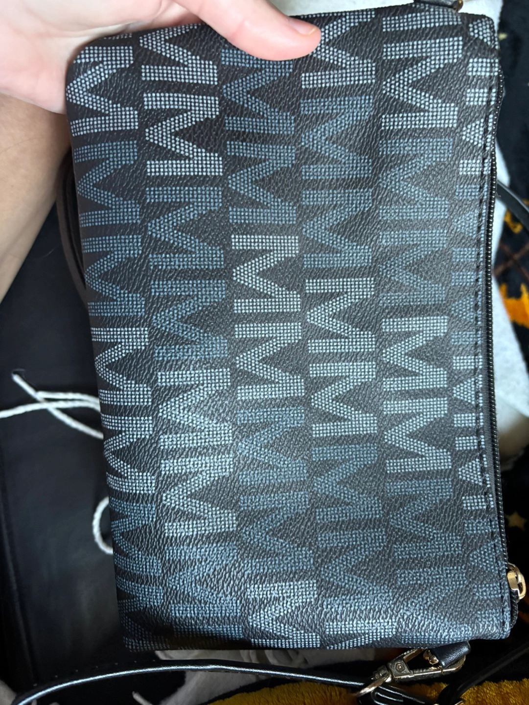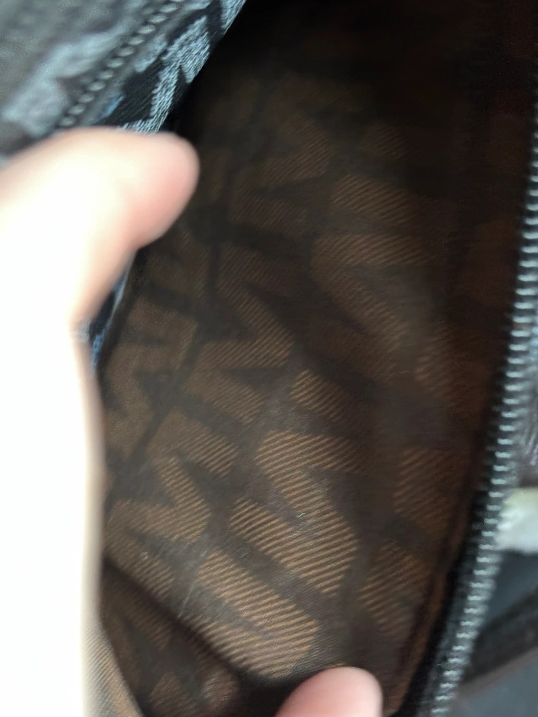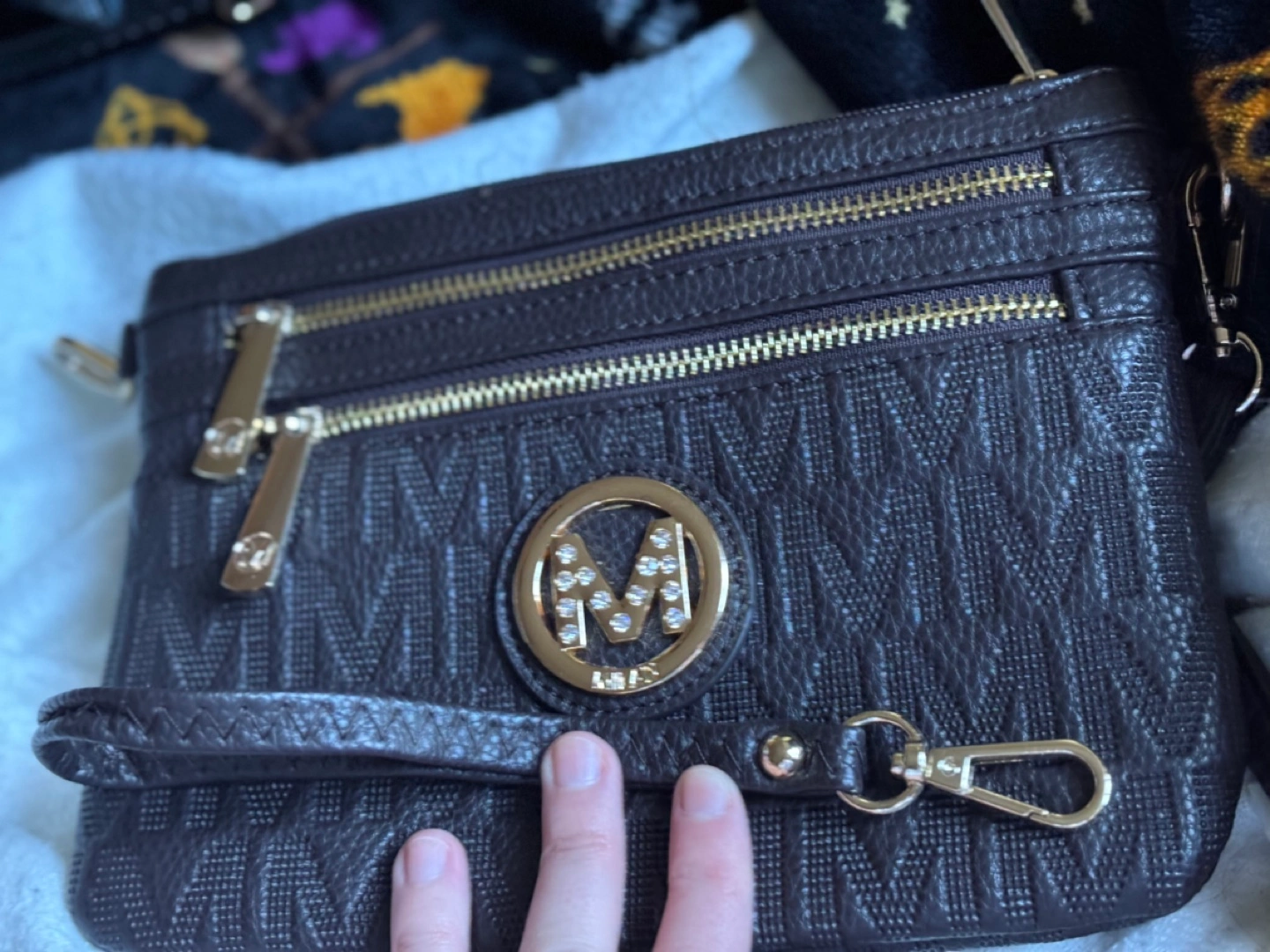 Brown and black and brown crossbody bags. Features multiple zippered compartments. Embossed with repeating brand logo. Gold-toned hardware. Small and compact. One was used once years ago and then put into storage when I started buying my fancier bags.