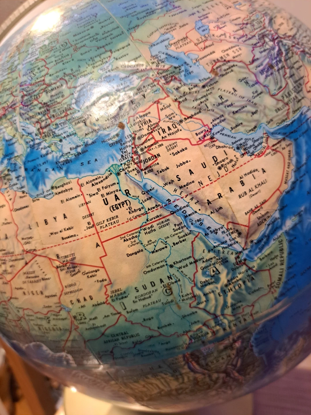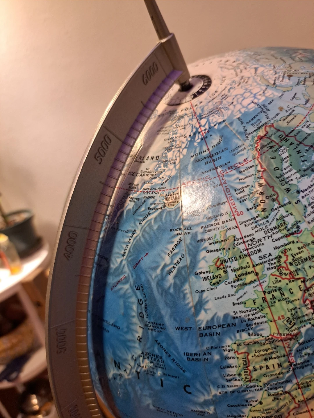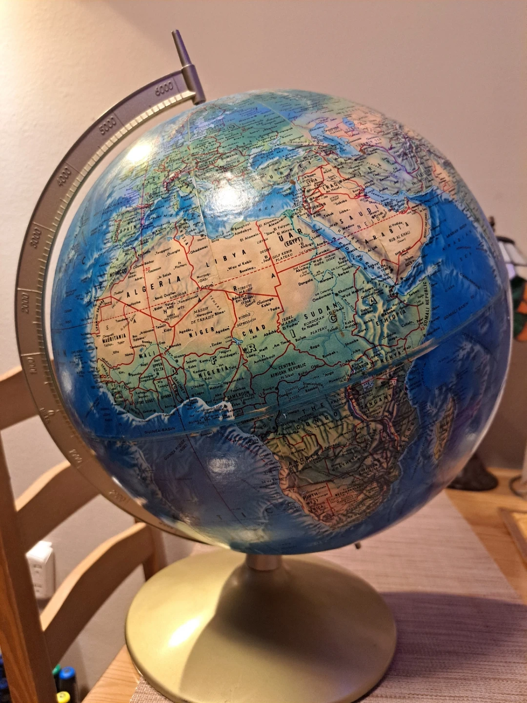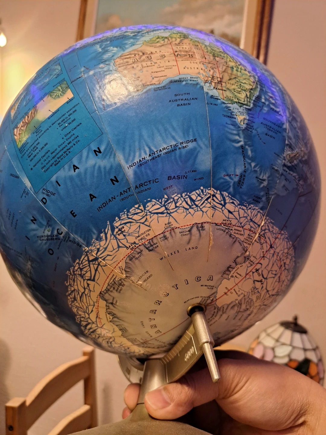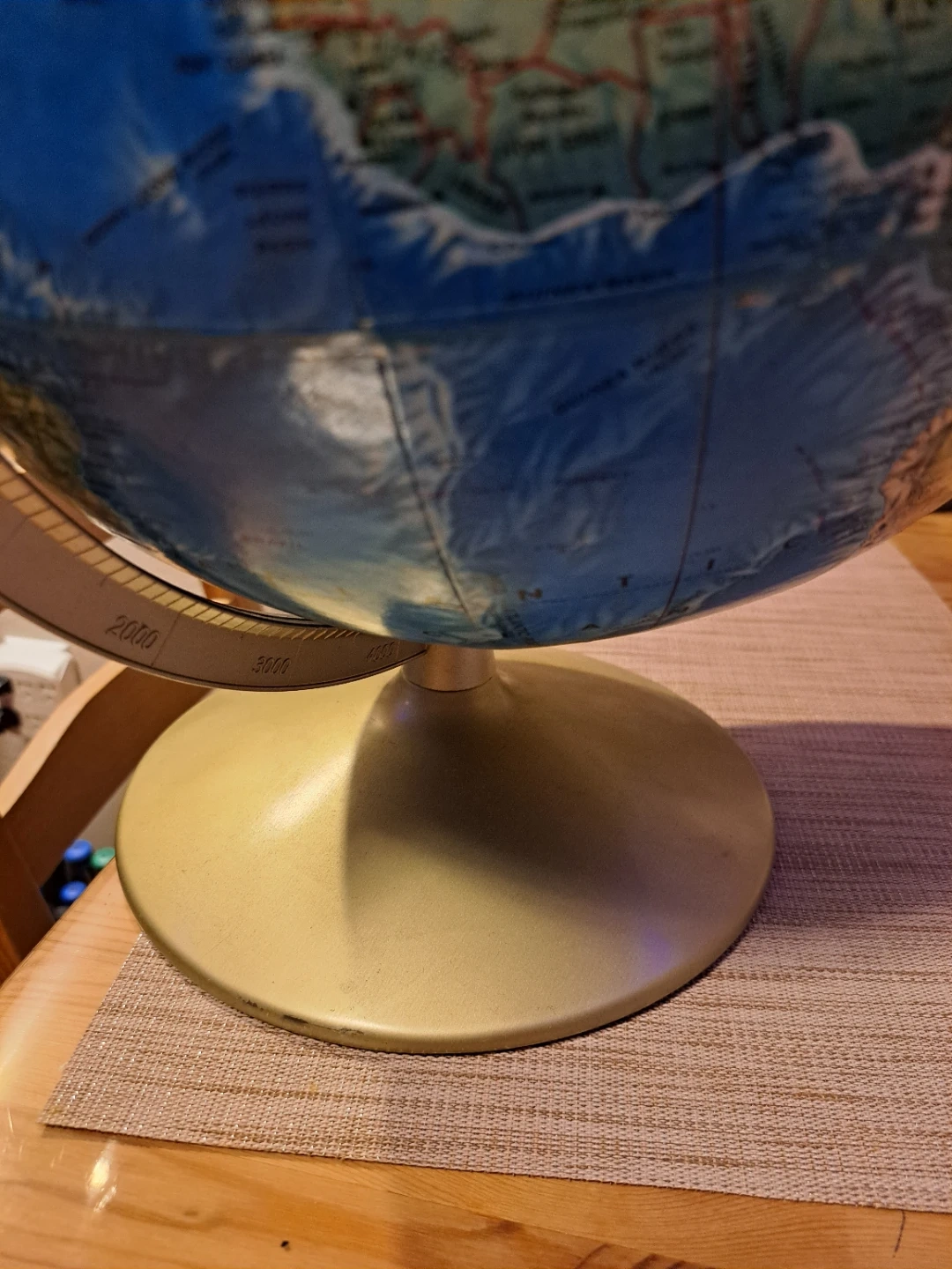 This vintage globe provides an educational view of the world. It features a metal meridian with altitude markings. A great addition for a study or classroom!