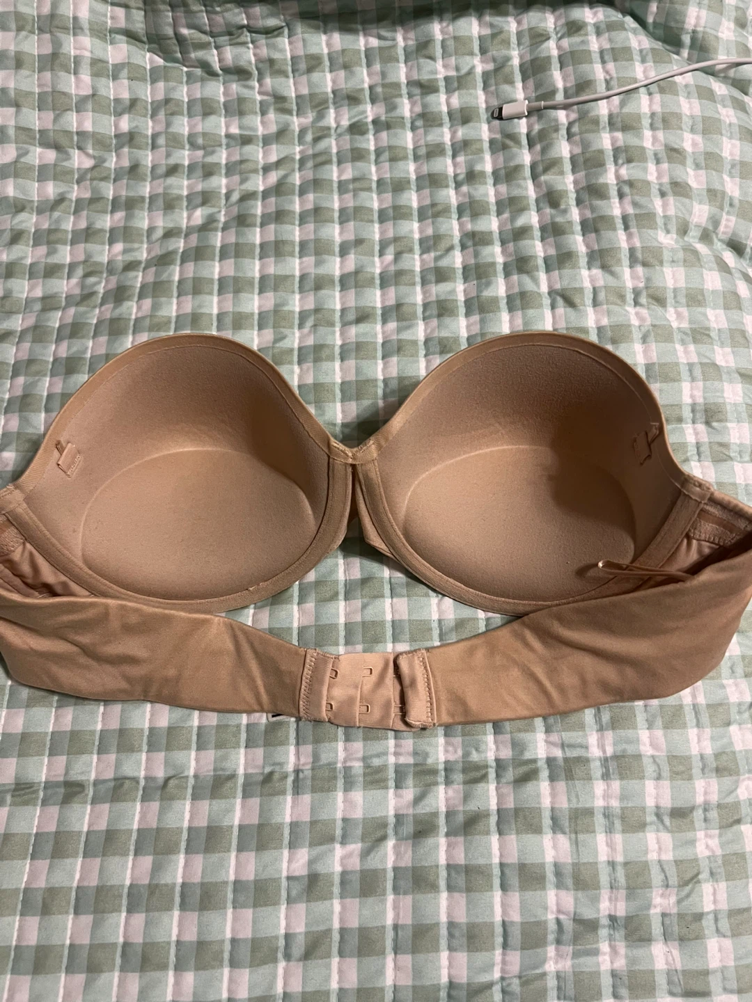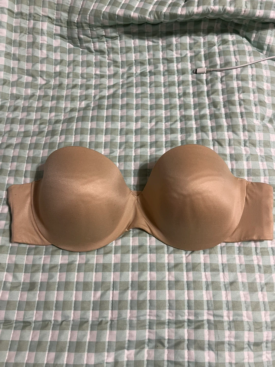 (One of two listed) nude Maidenform Comfort Devotion strapless bra in size 38B. The body is made of 81% nylon and 19% spandex. Check out my other bra listings!