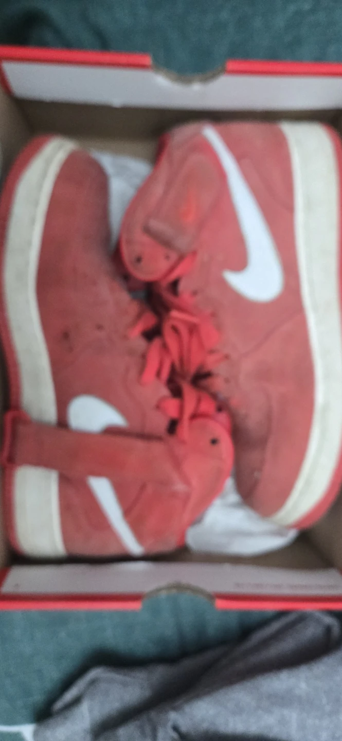 Selling a pair of Nike Air Force 1 High sneakers in red. They come with the original box. Originally bought for $89.99.