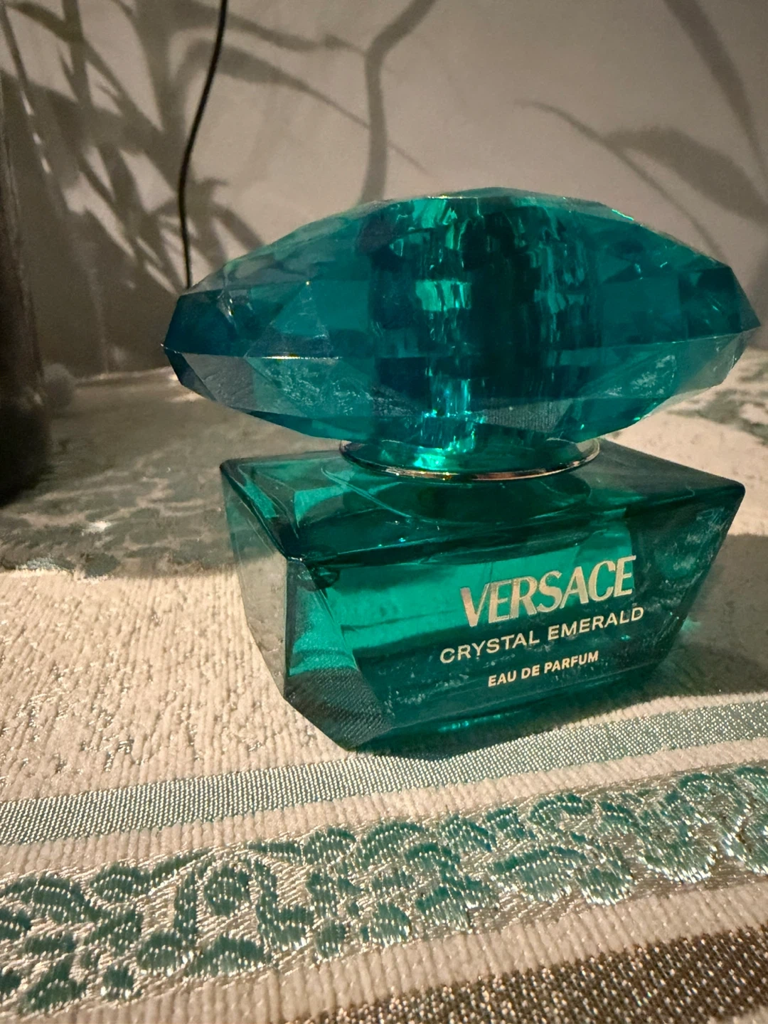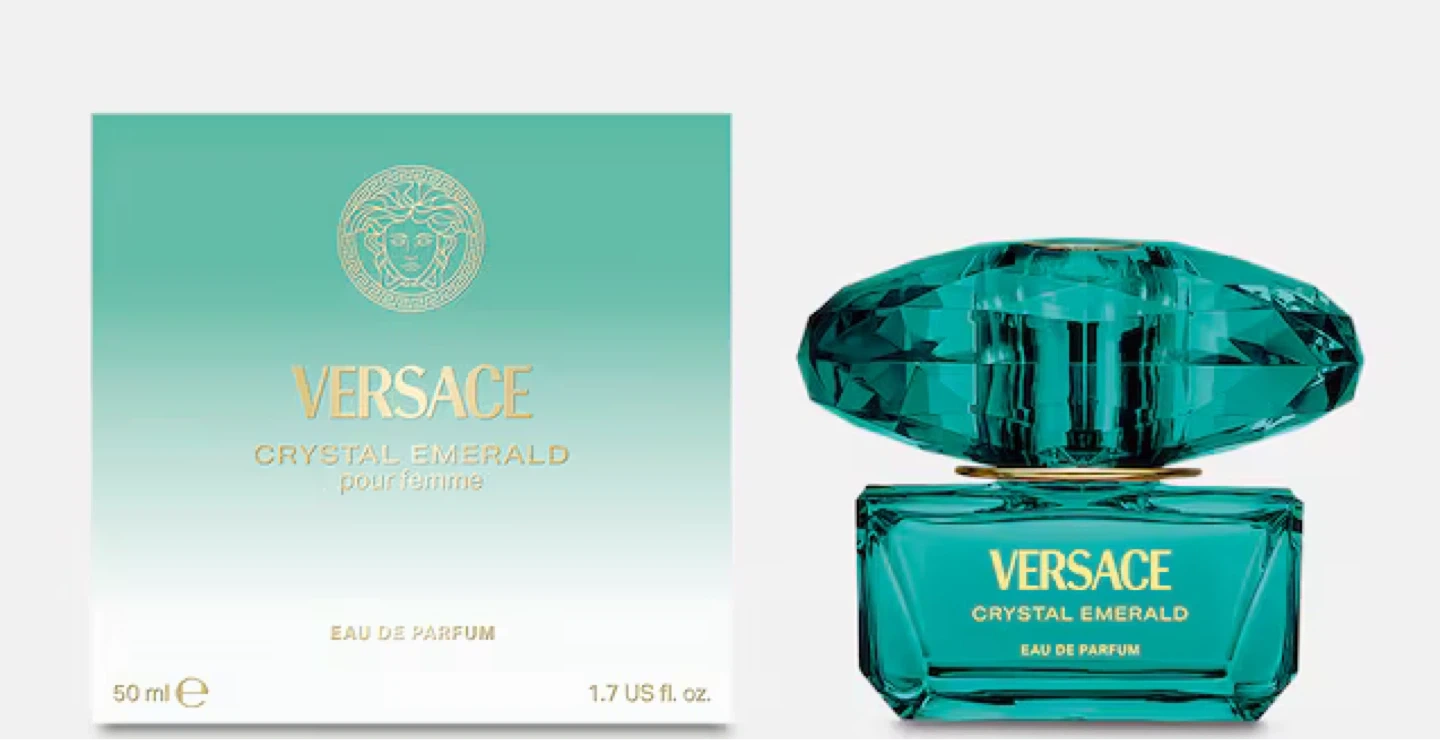 Versace Crystal Emerald Eau de Parfum for women. Bottle size is 50 ml. This fragrance offers an alluring and sophisticated scent, perfect for evening wear.