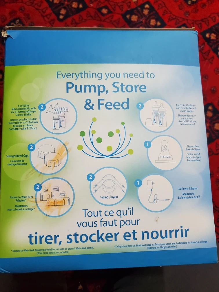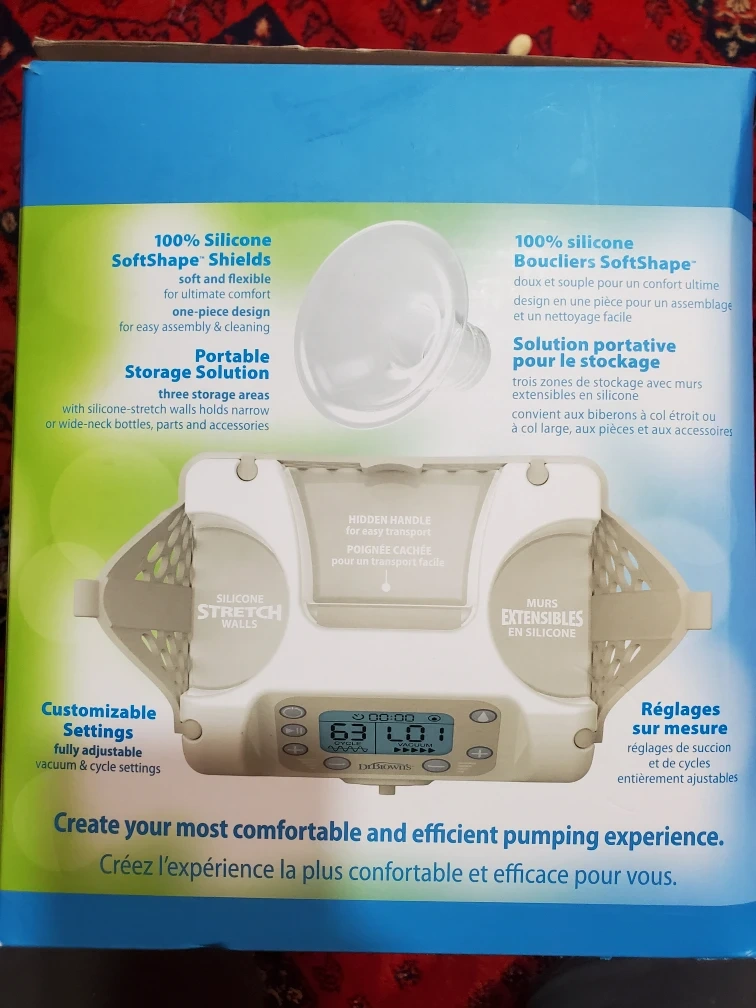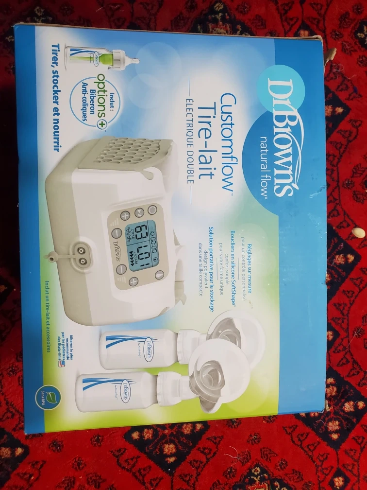 105Selling a Dr. Brown's Customflow double electric breast pump! This pump includes everything you need to pump, store, and feed. The box includes milk collection bottles with size B (25mm) SoftShape shields, storage/travel caps, narrow-to-wide-neck adapters, tubing, and a 6V power adapter. It also features 100% silicone SoftShape shields for ultimate comfort and a portable storage solution! Create your most comfortable and efficient pumping experience.
