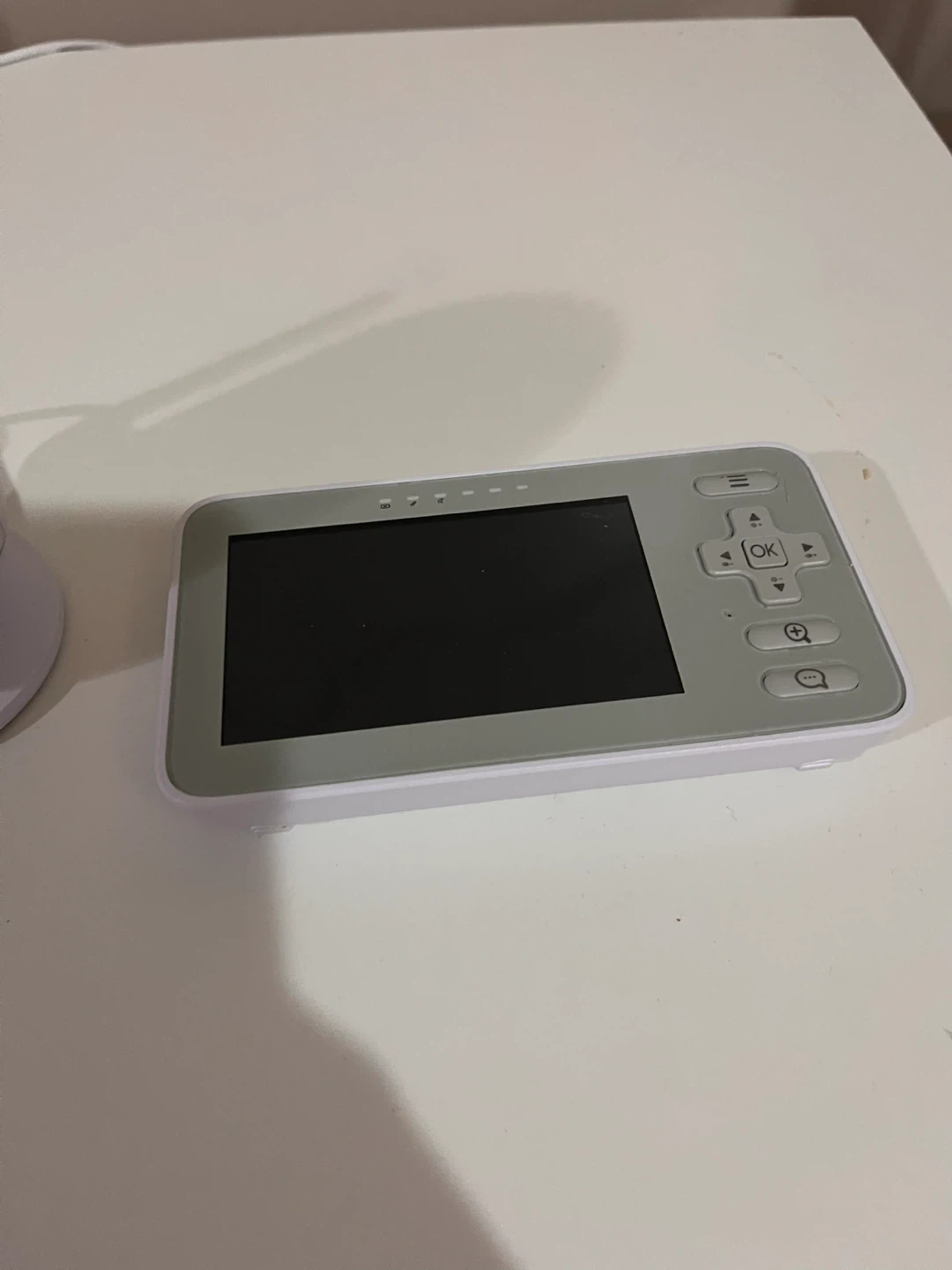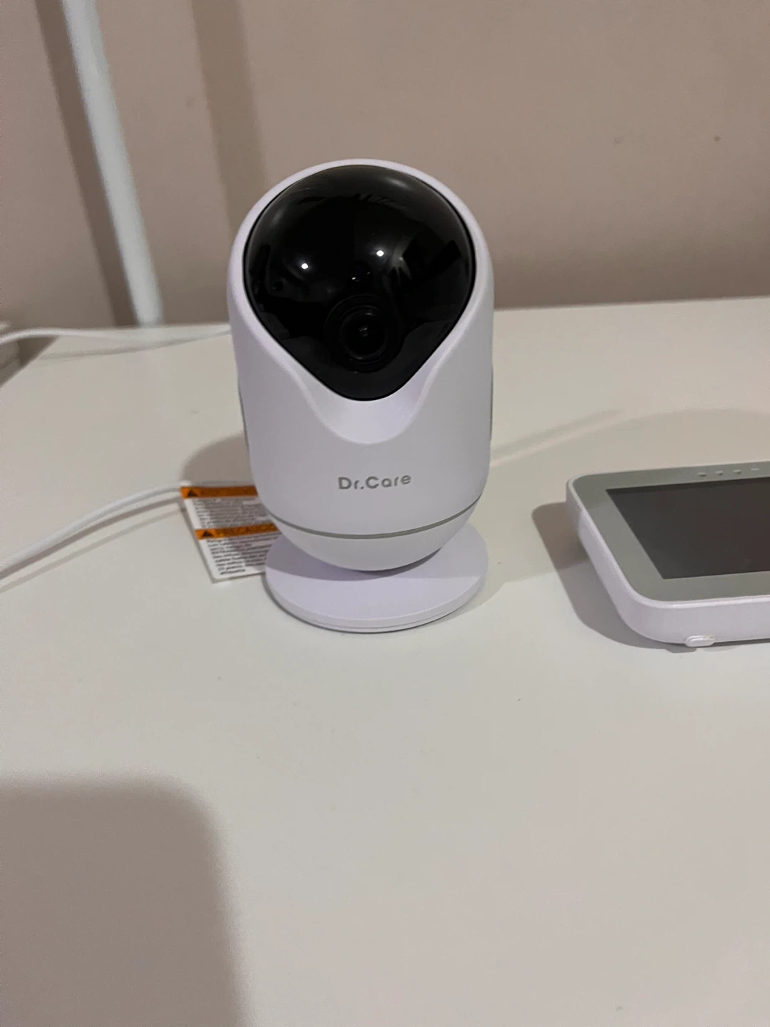 Used for 2 months, selling because I got gifted another one. Comes with camera and handheld screen, connects to Dr. Care app. Has sound and can turn 360 and up and down. Night mode, up to 4x zoom, music, and you can talk through the camera!