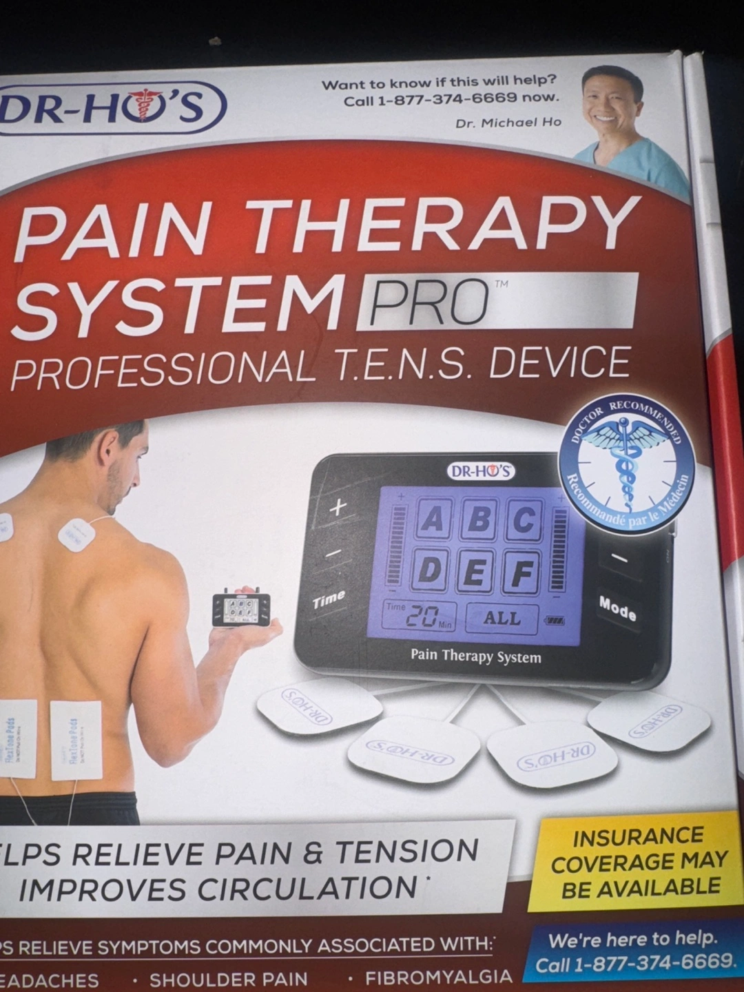 Selling a DR-HO'S Pain Therapy System Pro. It's a professional T.E.N.S. device designed to help relieve pain and tension, and improve circulation. It features adjustable intensity for comfort, an easy-to-read LCD screen, and 7 therapy modes for customized treatment. Also includes a sleep timer, rechargeable battery, and reusable electrode pads. Perfect for those seeking relief from various types of pain!