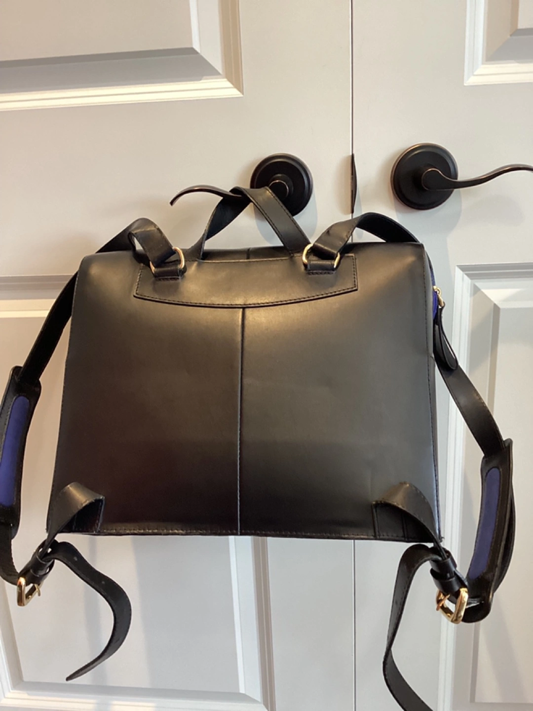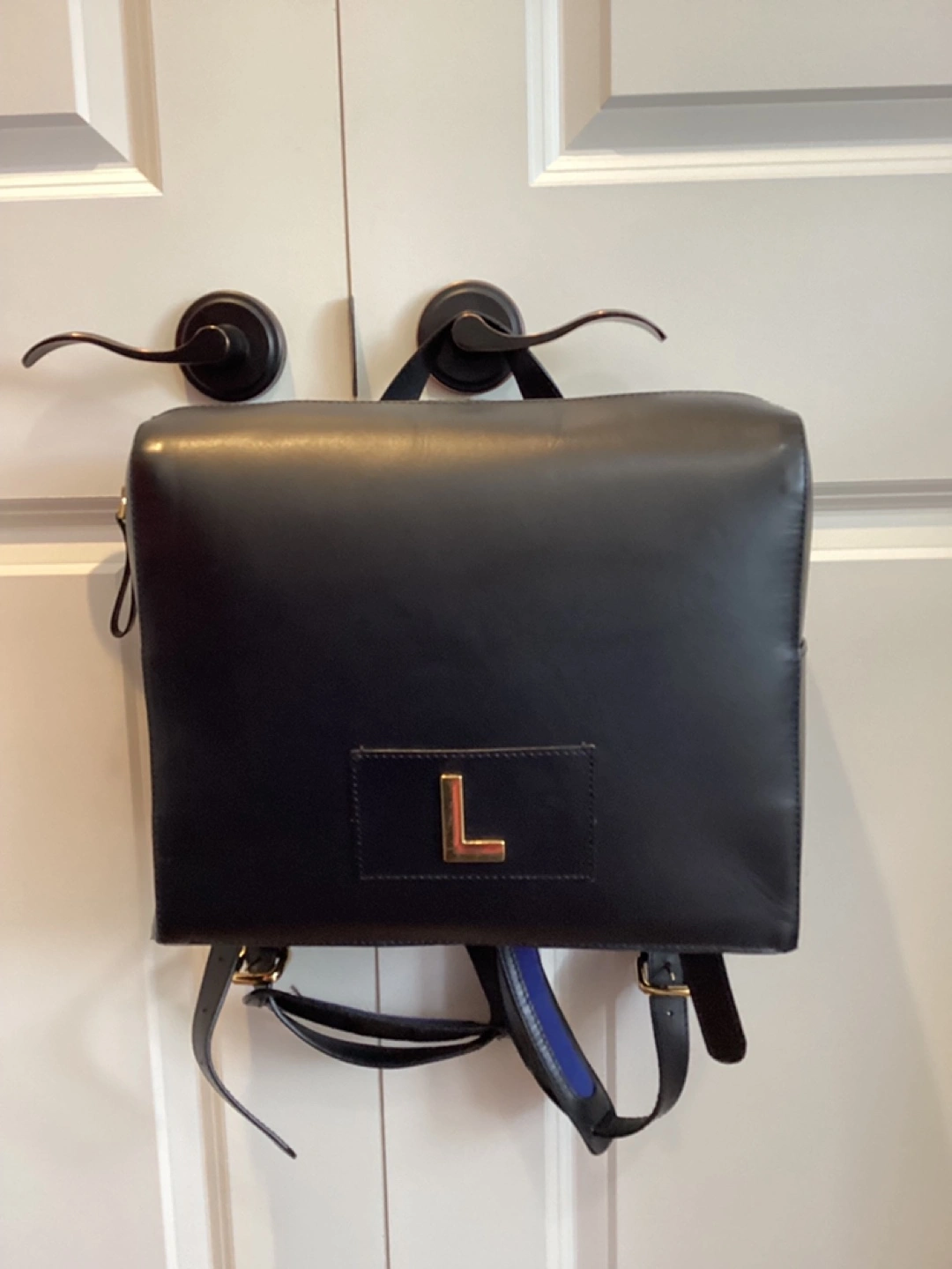 Dr. Liza Leather Backpack, some minor signs of wear - see pic of L which has some scratches, it is made of Brazilian leather which means it has marks which shows that it is real leather, it has a large inside slip pocket, a padded divider to protect your laptop/tablet, side slip pockets, approximate size 13” X 10 1/2” X 4 1/2”, $100 or best offer. You can read more about Dr. Liza’s products online.