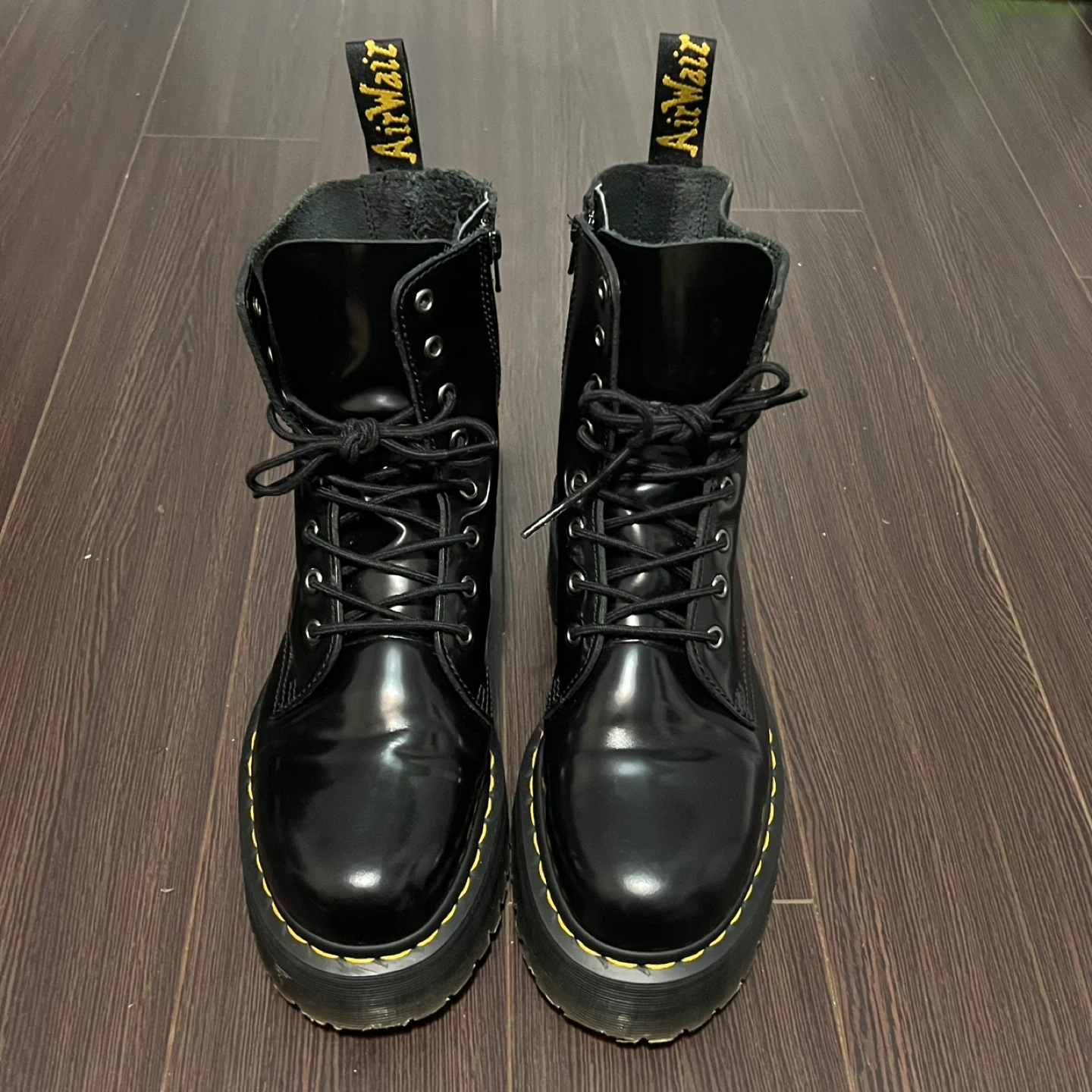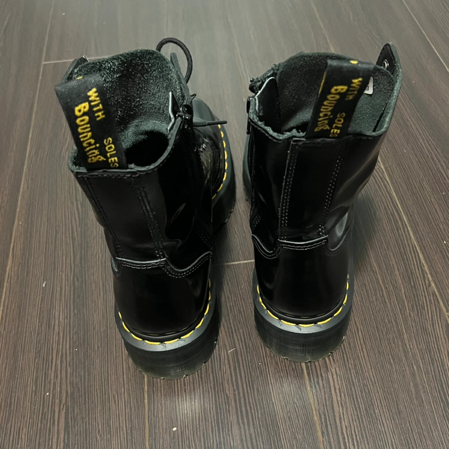 186Selling a pair of Dr. Martens Jadon platform boots in their smooth black leather. The leather is completely unmarked, free of scuffs. They're ALREADY broken in, in great shape and been worn 4 times since the last year that I have had them. Perfect for adding a bit of edge to any outfit. The size is US 9. These are unisex style as well. *NO TRADE; NO SHIPPING; ONLY CASH will be accepted*