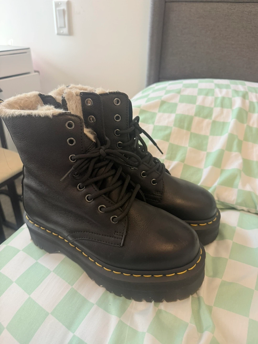 Selling a pair of Dr. Martens Jadon FL platform boots in black. They are a US size 7. Just selling because I only wore 3 times!