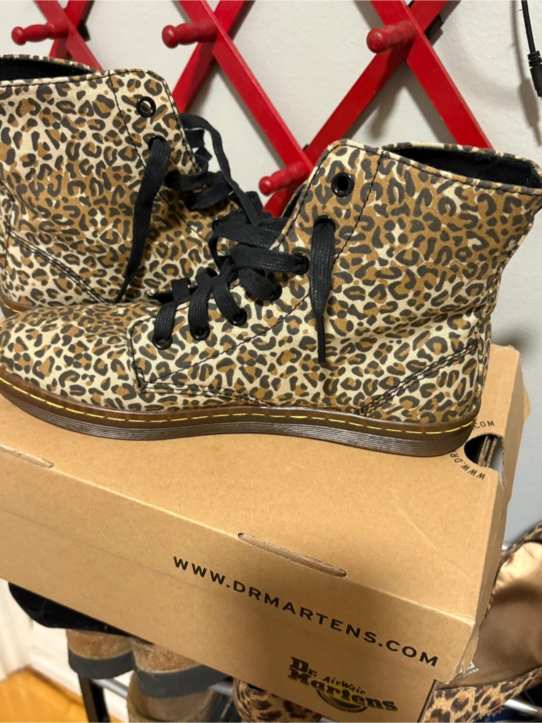 10Dr. Martens boots with a cool leopard print! They come with their original box