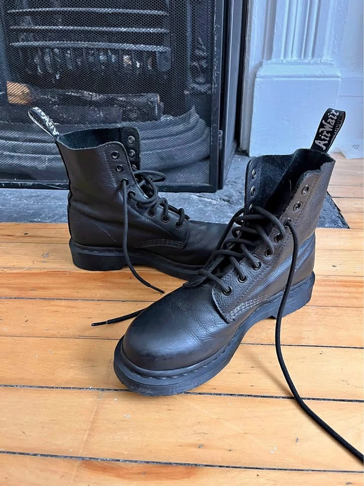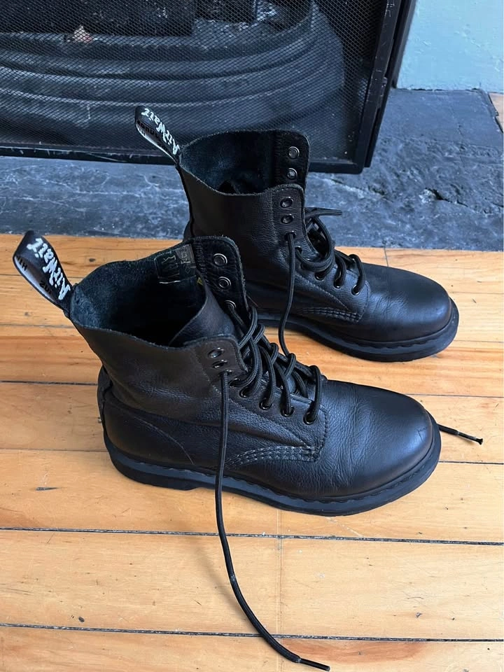 US Size 7 Women’s Doc Martens Pascal lace-up boots. Soft leather, black monochrome. In excellent, near-new condition. Super comfortable, lightweight and great traction. $215 new, selling for $150 obo
