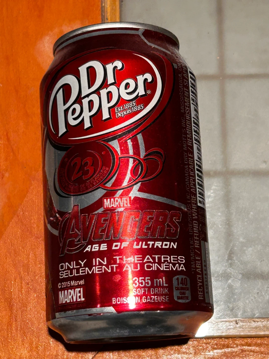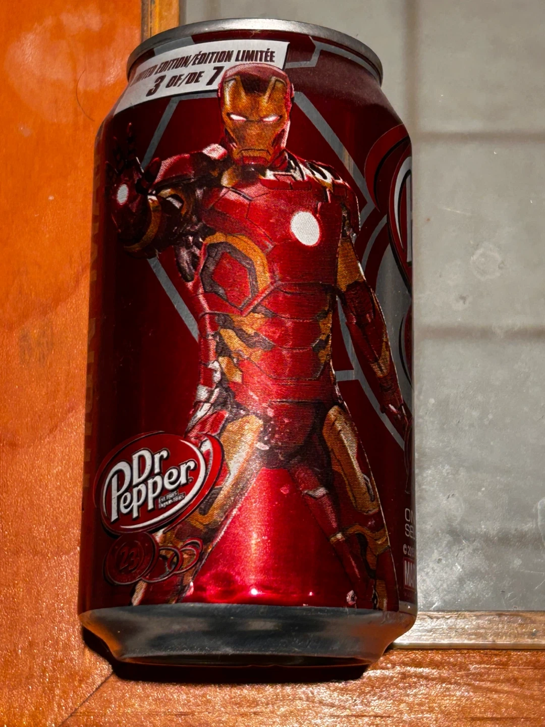 Selling a limited edition Dr. Pepper can featuring Iron Man from the Avengers: Age of Ultron movie! This is a 355ml can. Limited edition 3 of 7. Cash only.