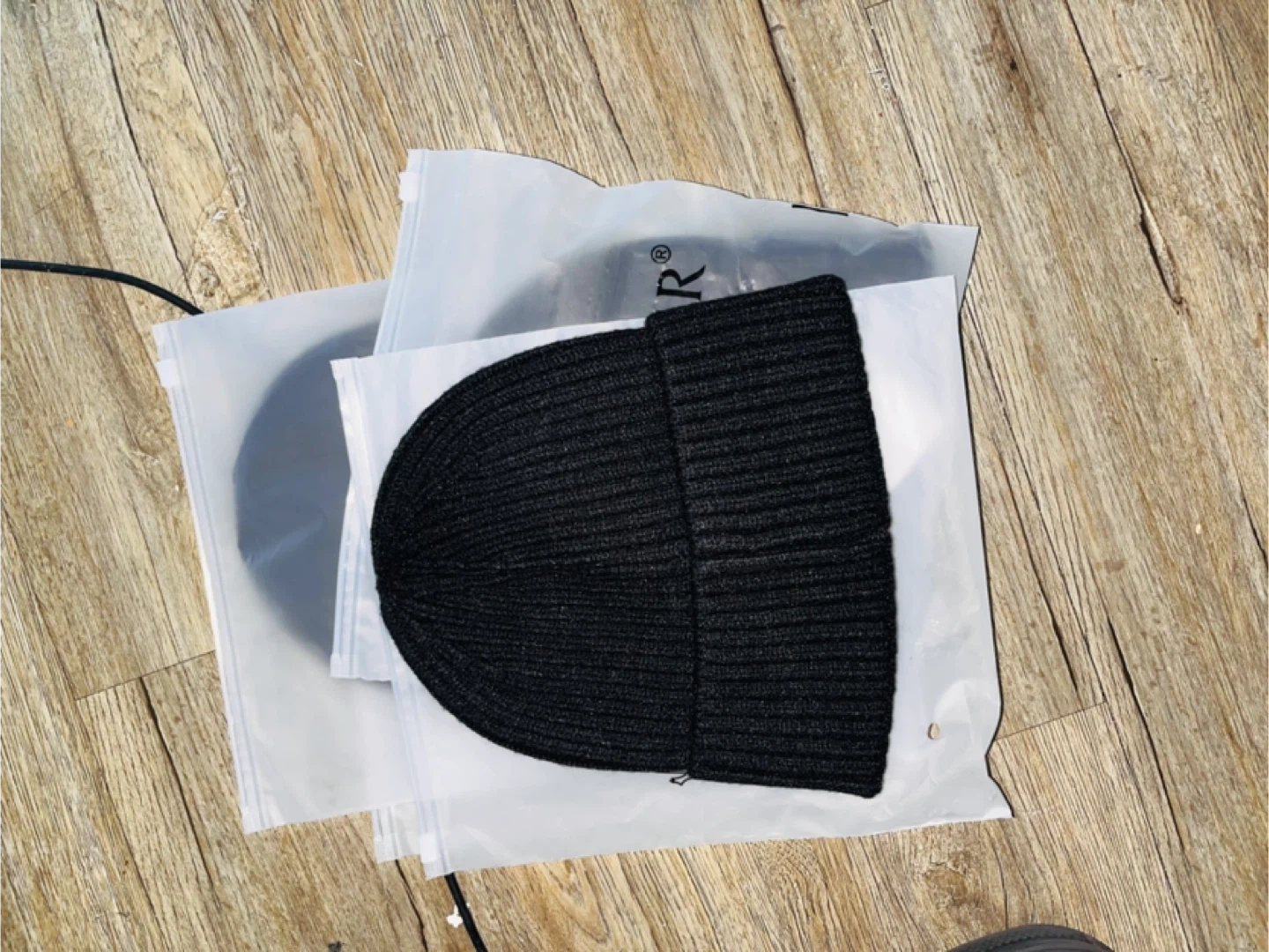 Moncler Black Ribbed Knit Beanie Hat