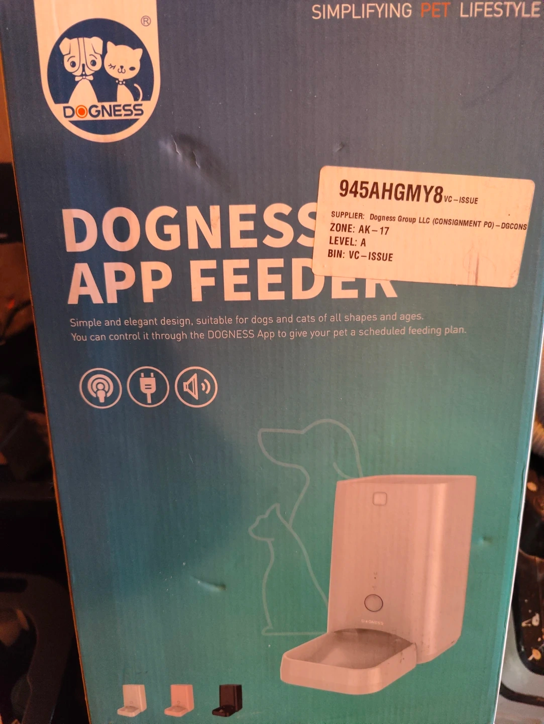 This is a DOGNESS APP Feeder. It's suitable for dogs and cats of all shapes and ages. You can control it through the DOGNESS App to give your pet a scheduled feeding plan.