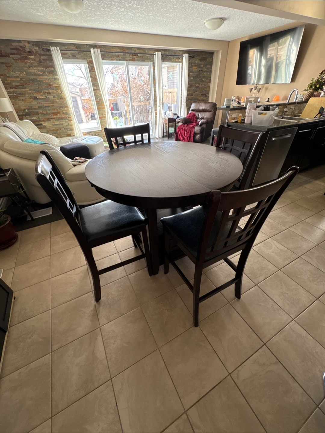 - Dimensions42” Round 36” Table height Bar height chairs
