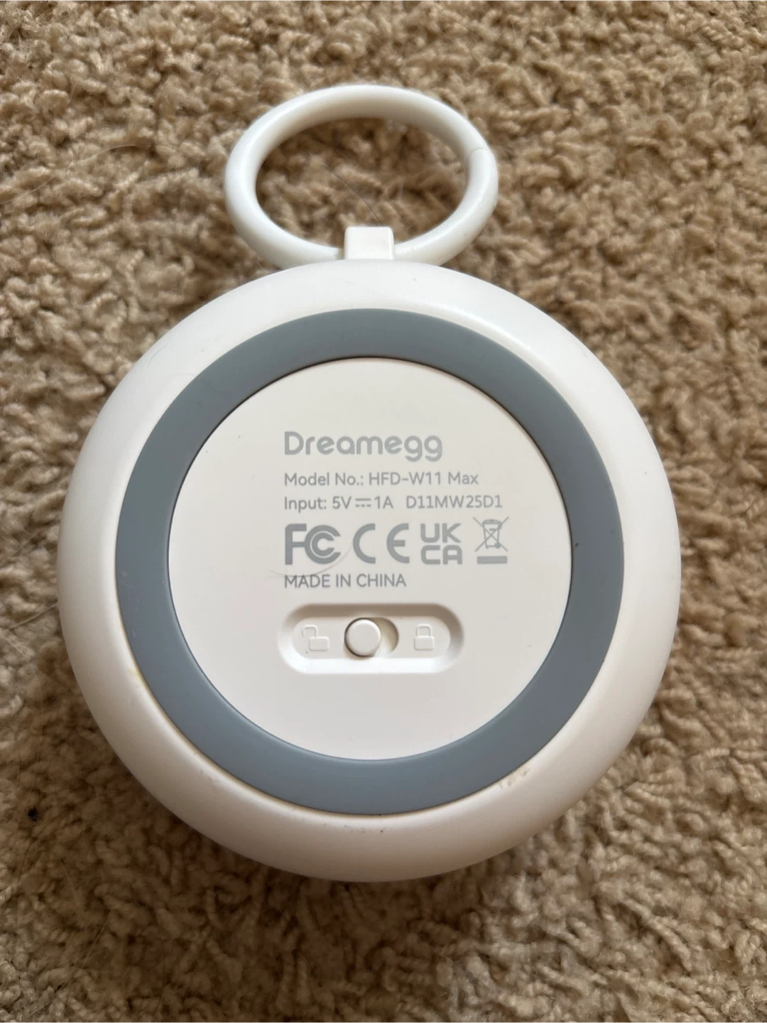 Portable white noise sound machine with multiple sound options and timer settings. It's rechargeable and has a hanging loop for easy placement. Offers 15 soothing sounds including lullabies and nature sounds. Great for babies and adults needing sleep or focus!