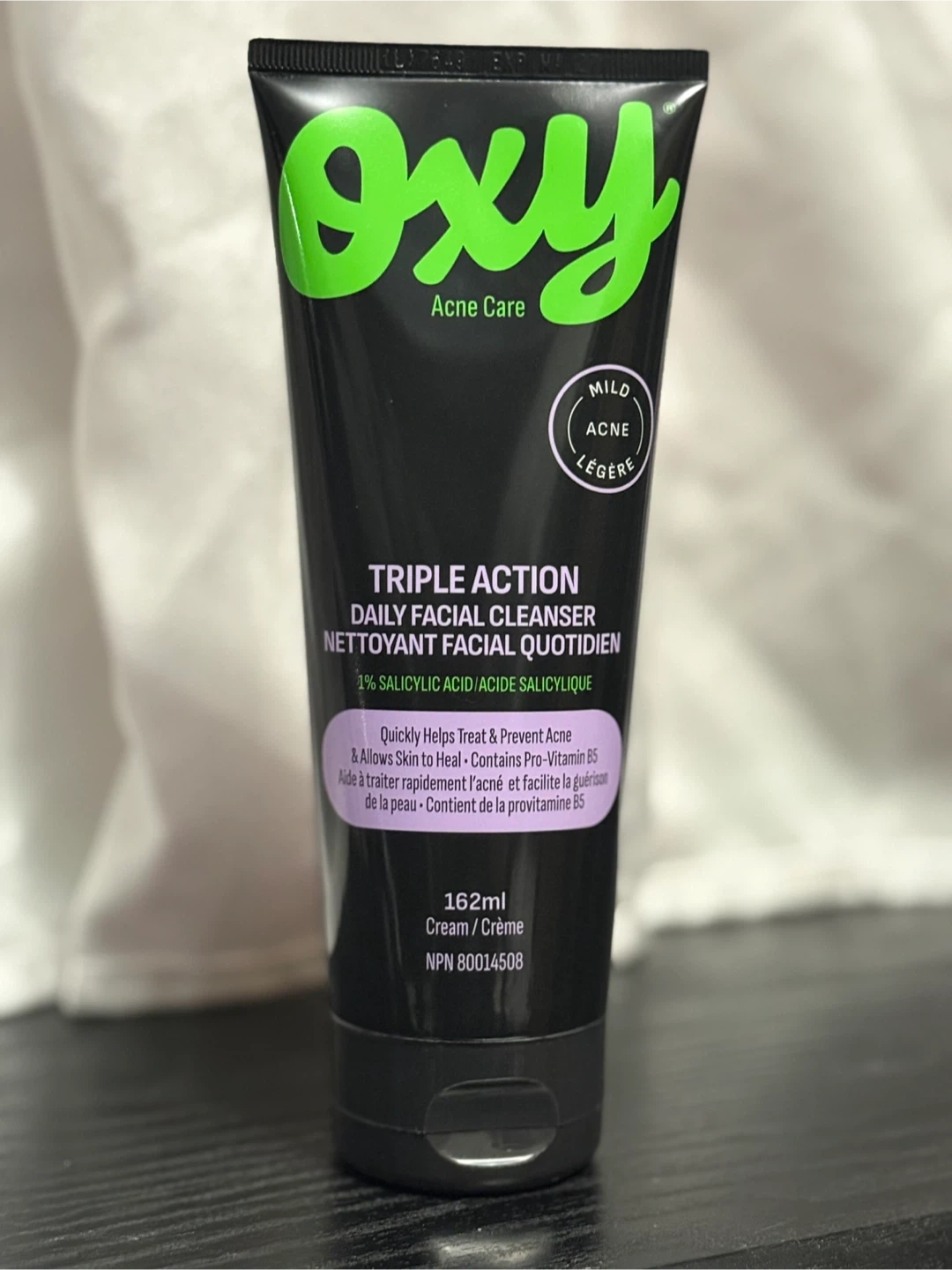 Oxy Acne Care Triple Action Daily Facial Cleanser with 1% Salicylic Acid. It quickly helps treat and prevent acne while allowing skin to heal. Contains Pro-Vitamin B5. 162ml cream.