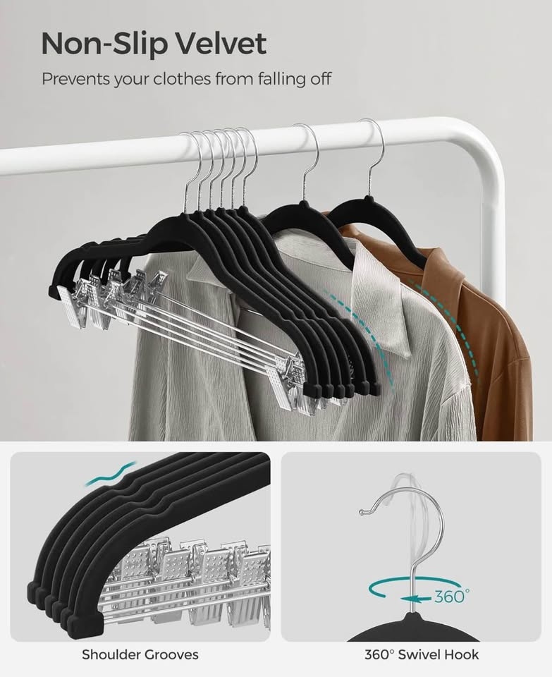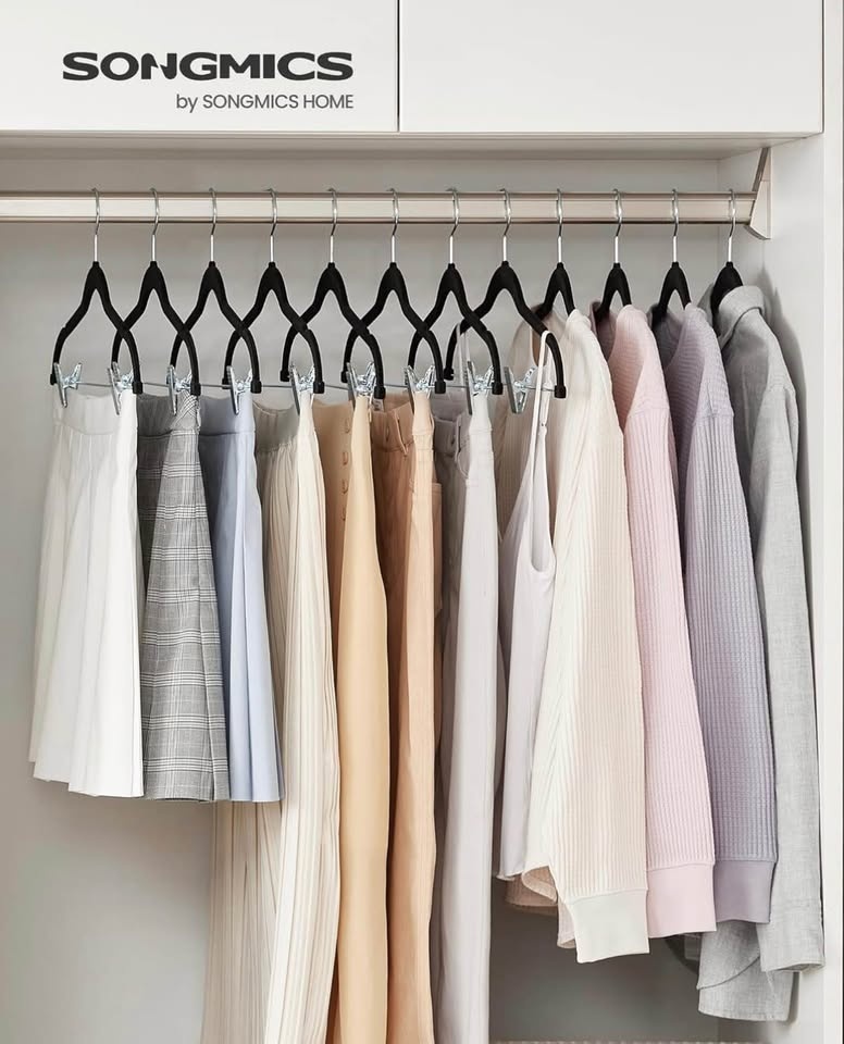 Upgrade your closet with premium SONGMICS velvet hangers β strong, space-saving, and gentle on clothes. Perfect for pants, skirts, coats, dresses, tank tops, and more.