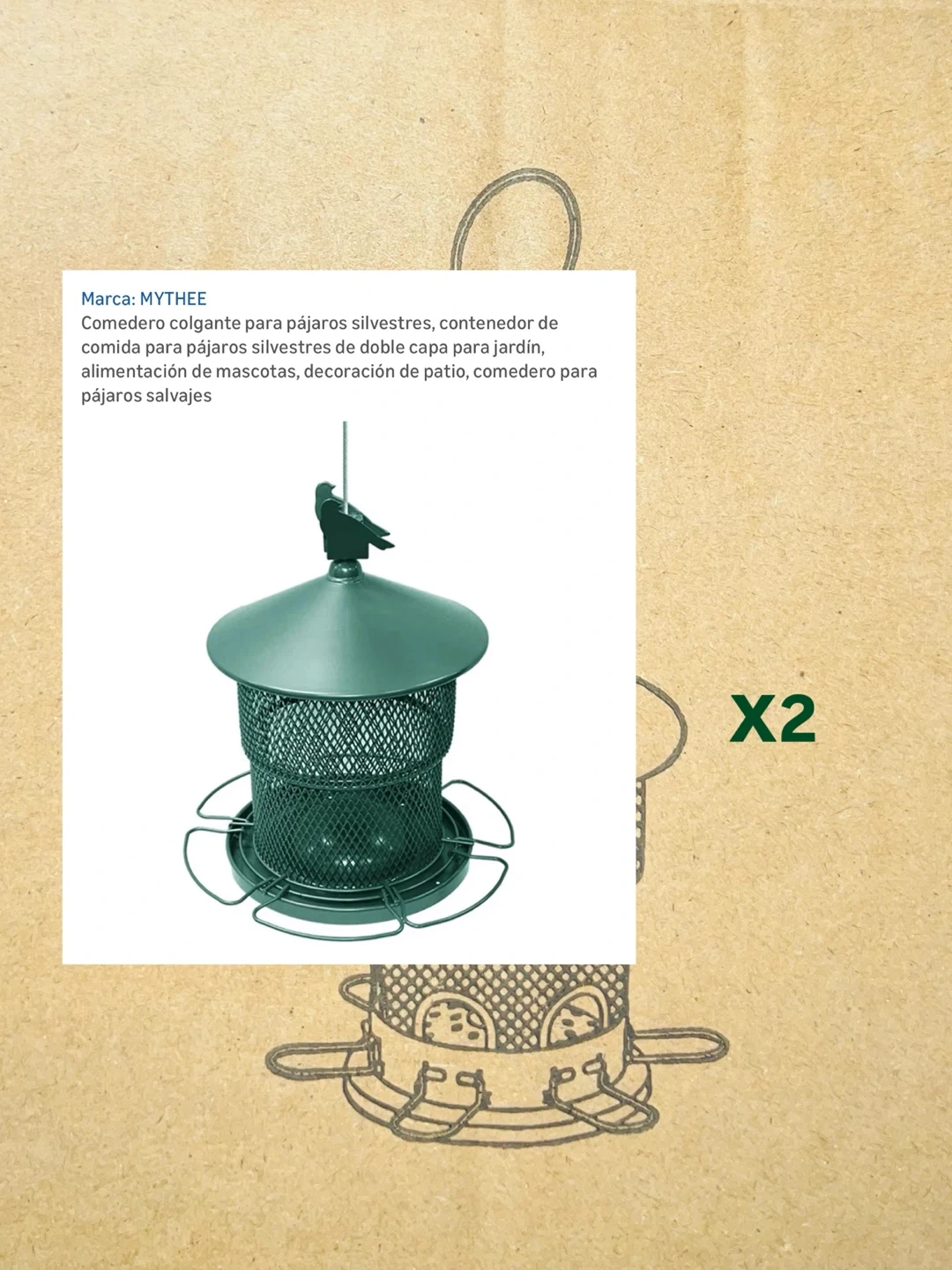 This is a set of two hanging bird feeders by MYTHEE. They're made of green metal with a mesh design to hold birdseed. The feeders include a tray at the bottom and a lid at the top.