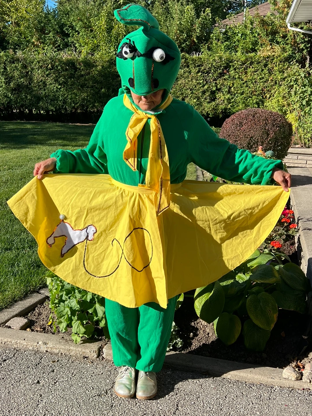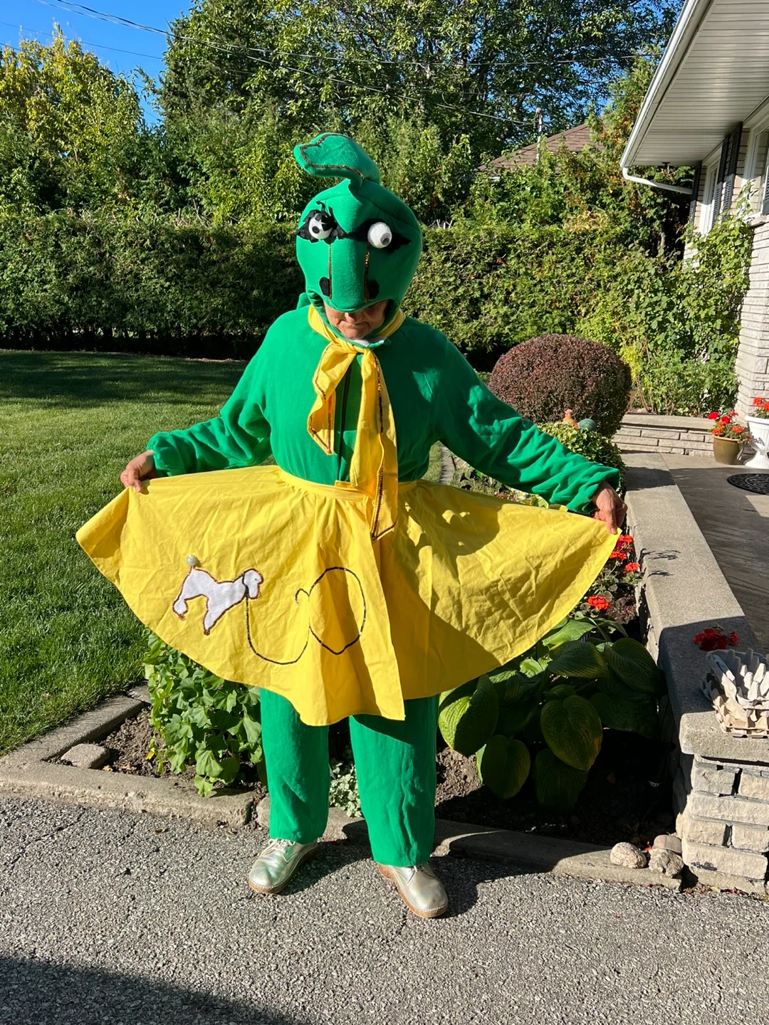 An original custom made dragon costume for adults or tall person? It's green and yellow and is in great condition. Perfect for your Halloween party!