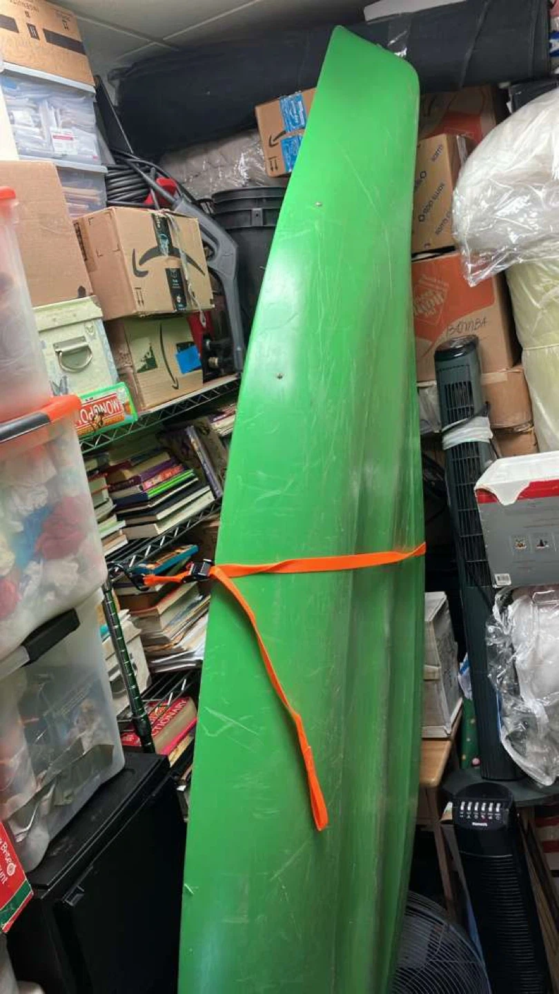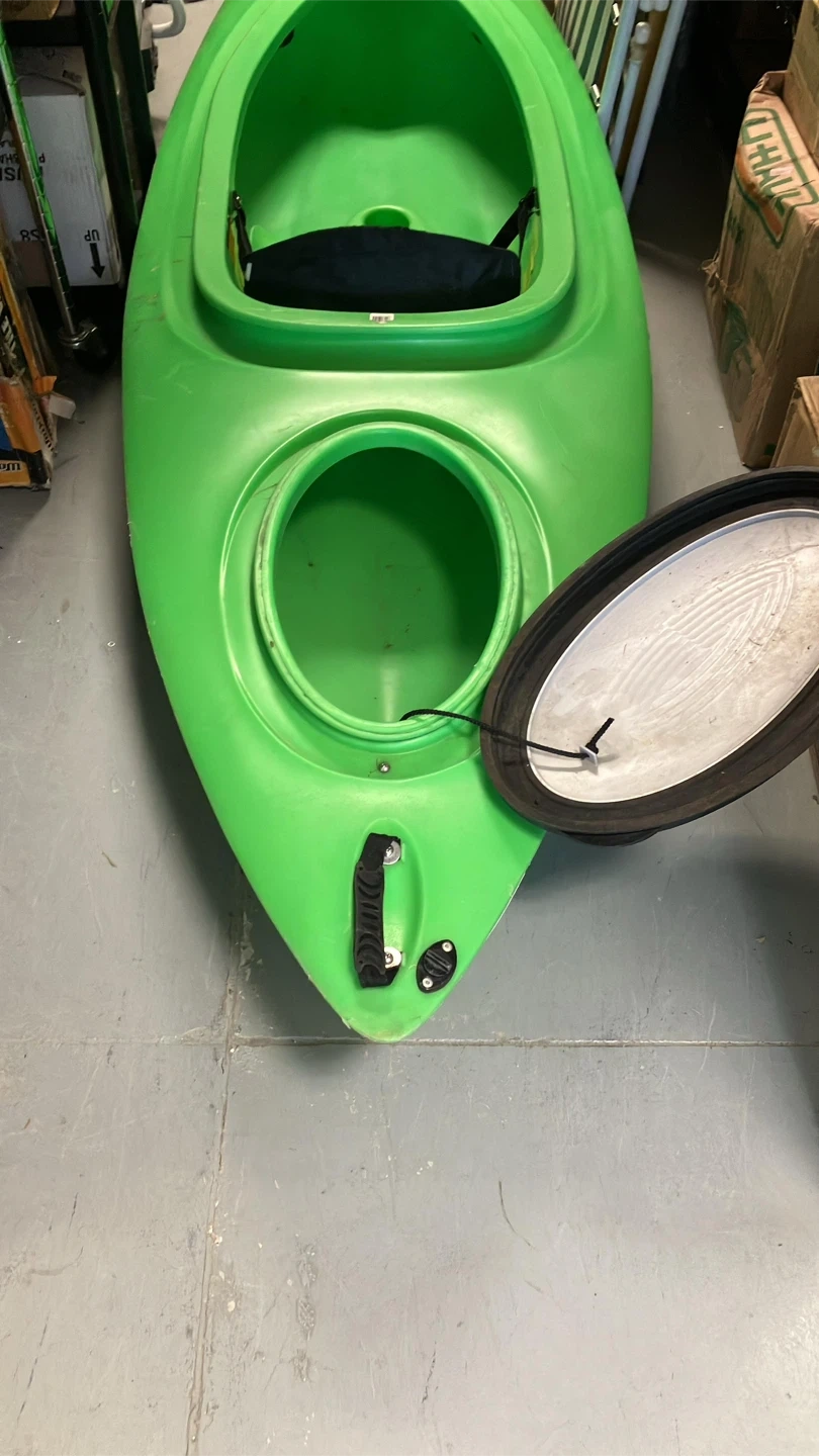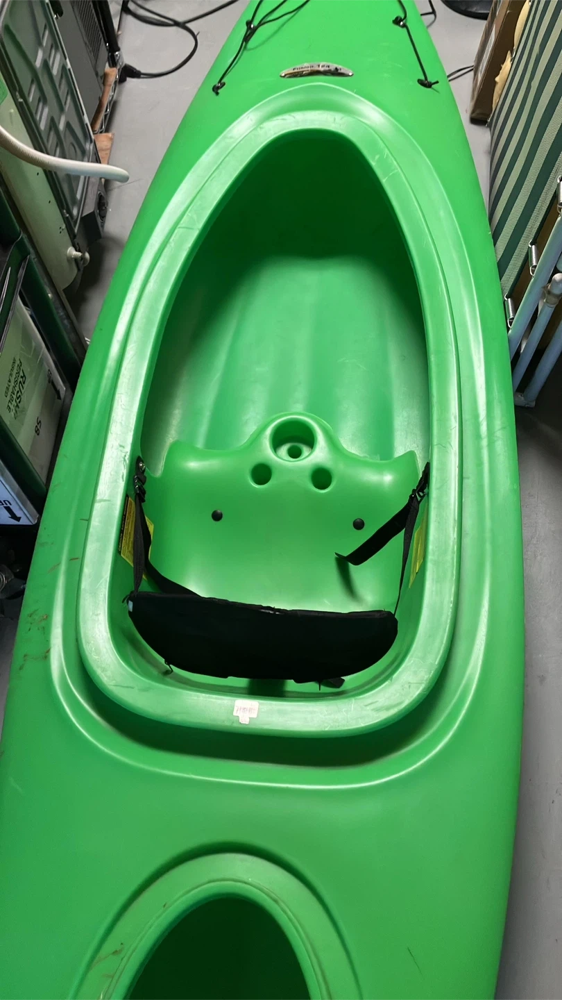 This is a single-person kayak. It's lime green and made of durable plastic. Features a seat and a storage hatch. This kayak come with pedals 1 and New accessories: plastic bit holder and other accessories.