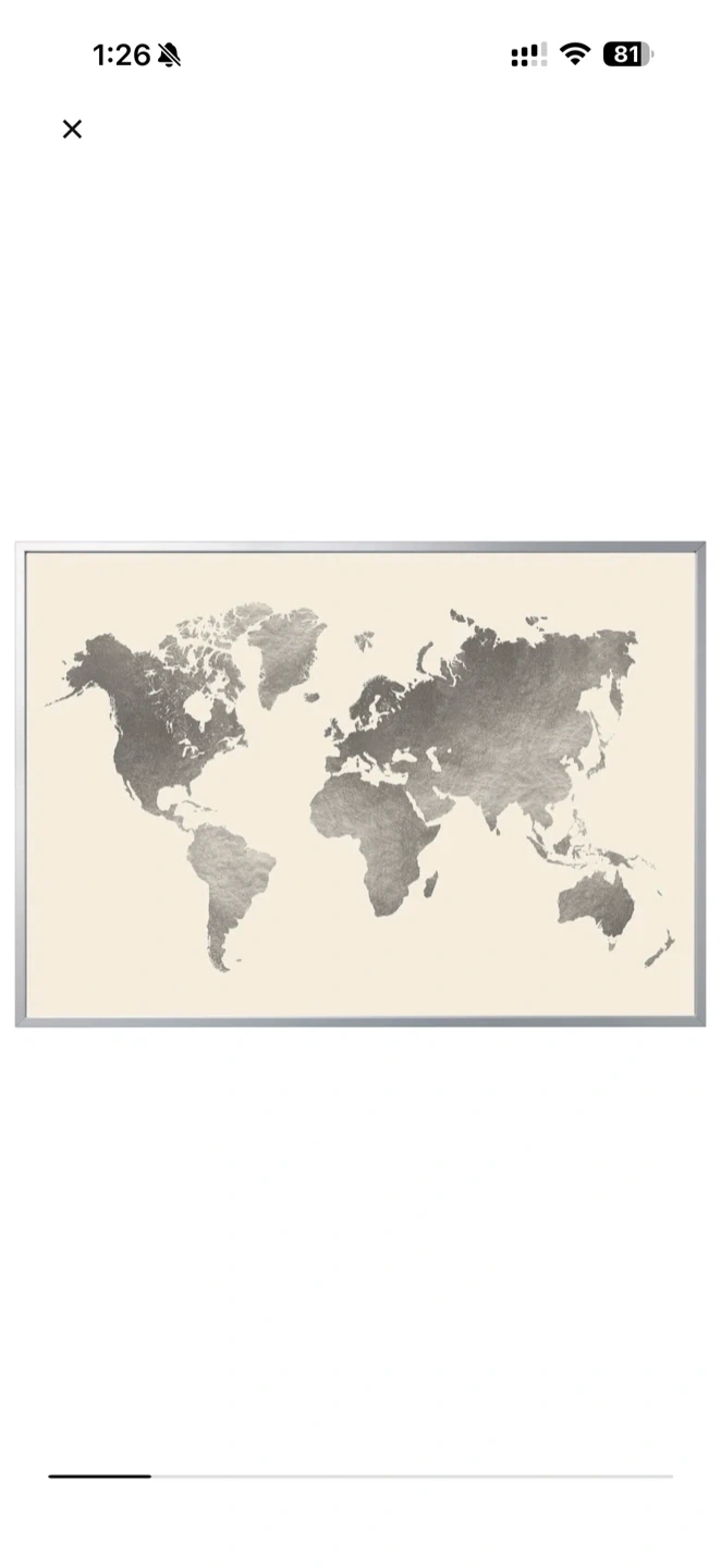 Selling a lovely world map wall art piece from IKEA. It features a silver-tone world map design on a light background, framed in a simple silver-tone frame. It's a great way to add a touch of global style to your home decor!