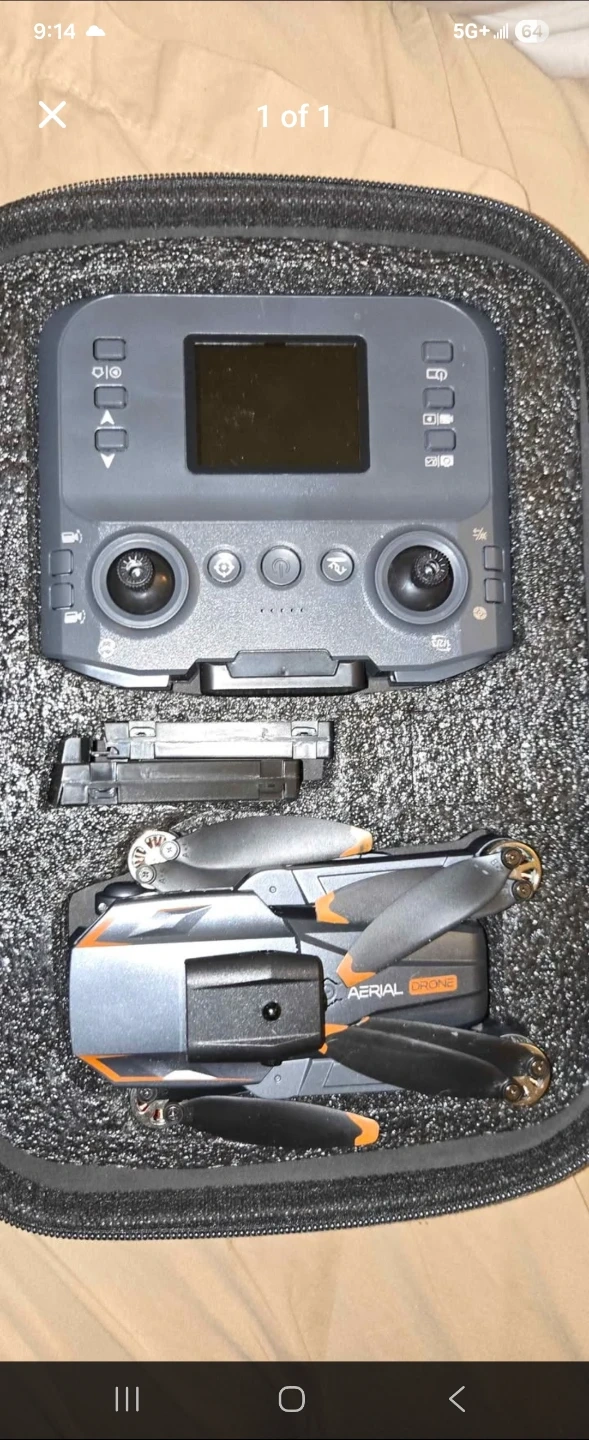 This aerial drone comes with its original remote controller and protective case. It features foldable arms for easy transport. Great for beginners looking to explore drone photography! Obo