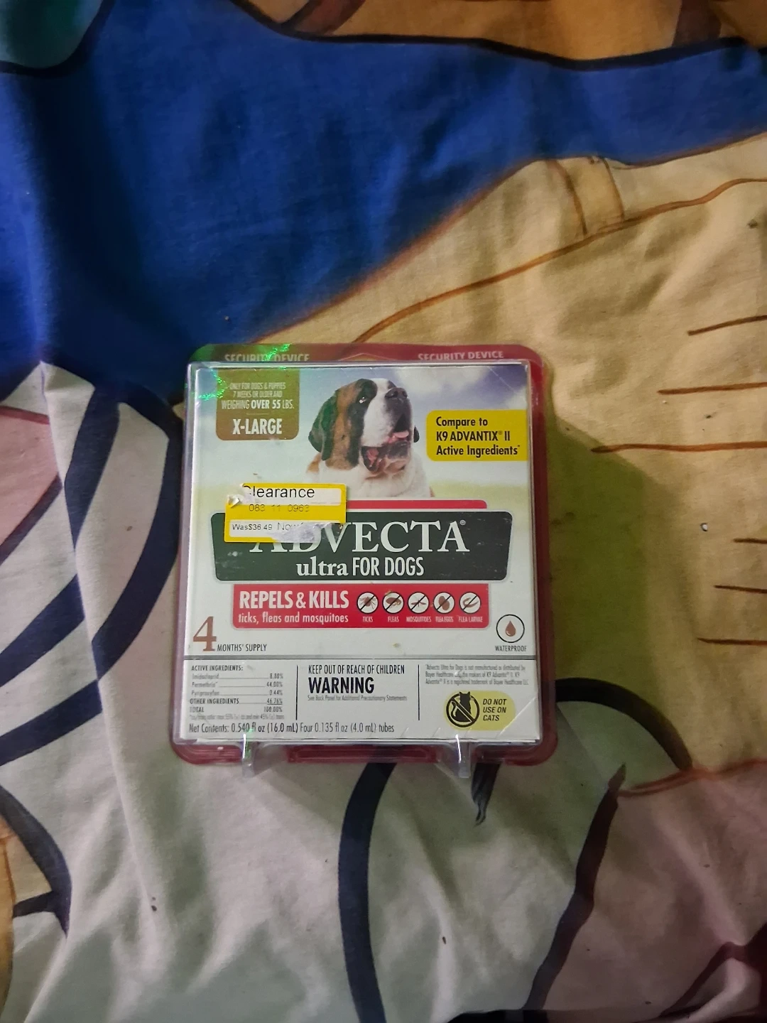 Selling ADVECTA Ultra for Dogs, X-Large size, for dogs and puppies weighing over 55 lbs. It repels and kills ticks, fleas, and mosquitoes. It's a 4-month supply and waterproof.