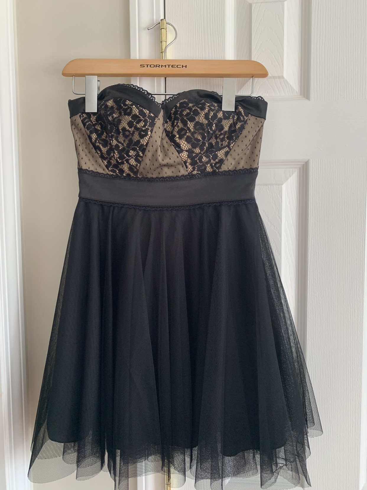Beautiful cocktail dress black print laced very cute on size in description of the picture