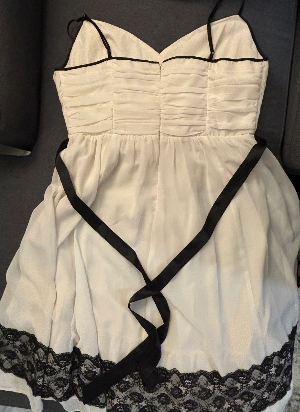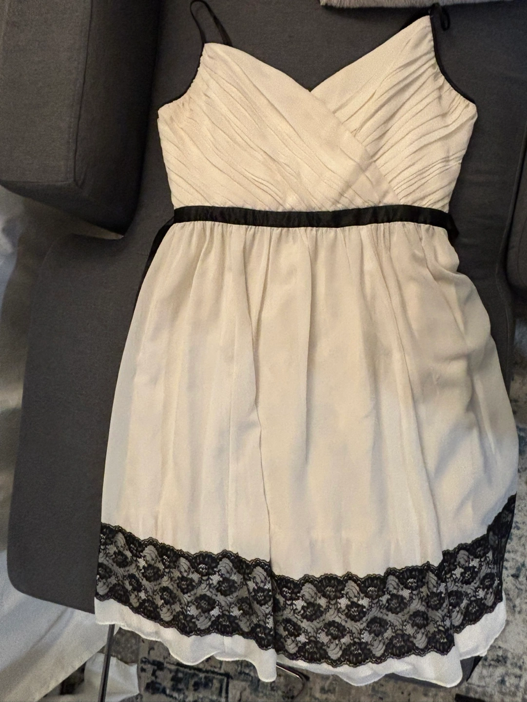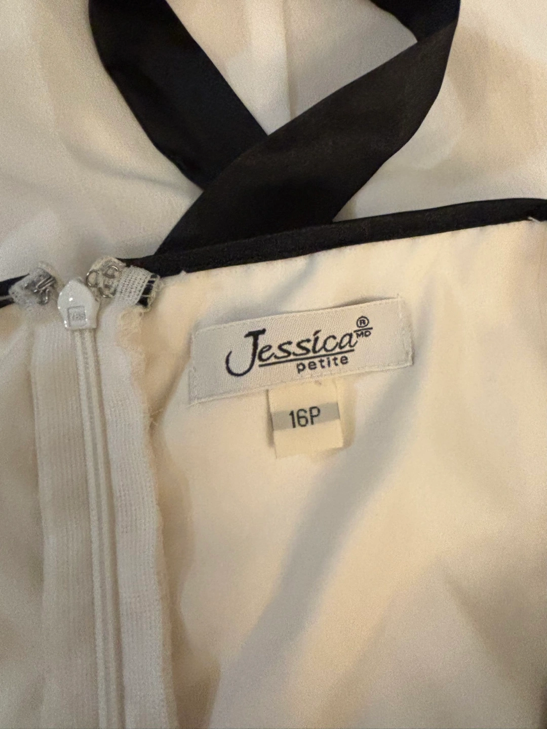 White dress with black detailing nice for events like weddings, graduations family gatherings