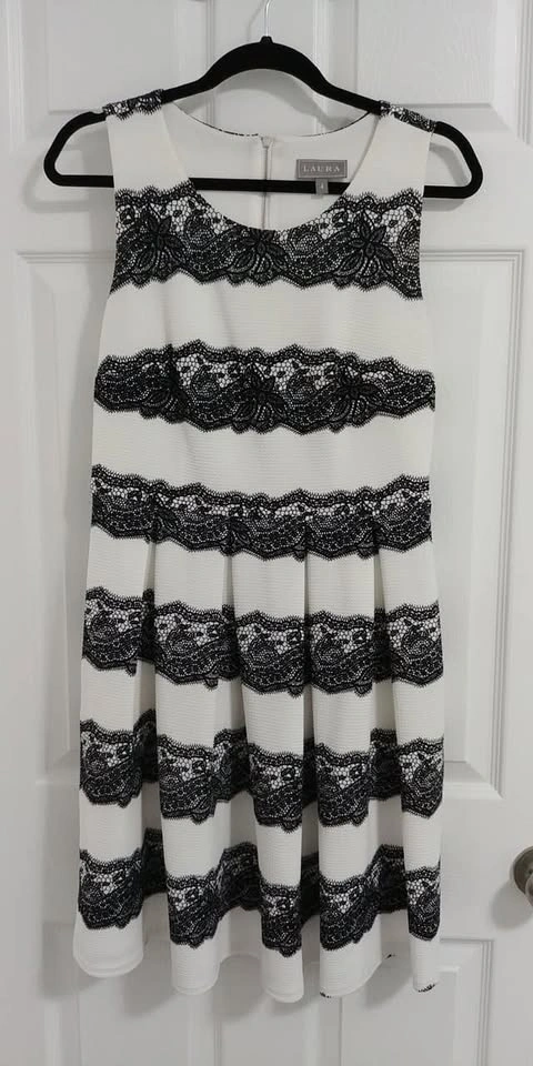 15Size 4 Black and white Pleated and knee length From pet free and smoke free home