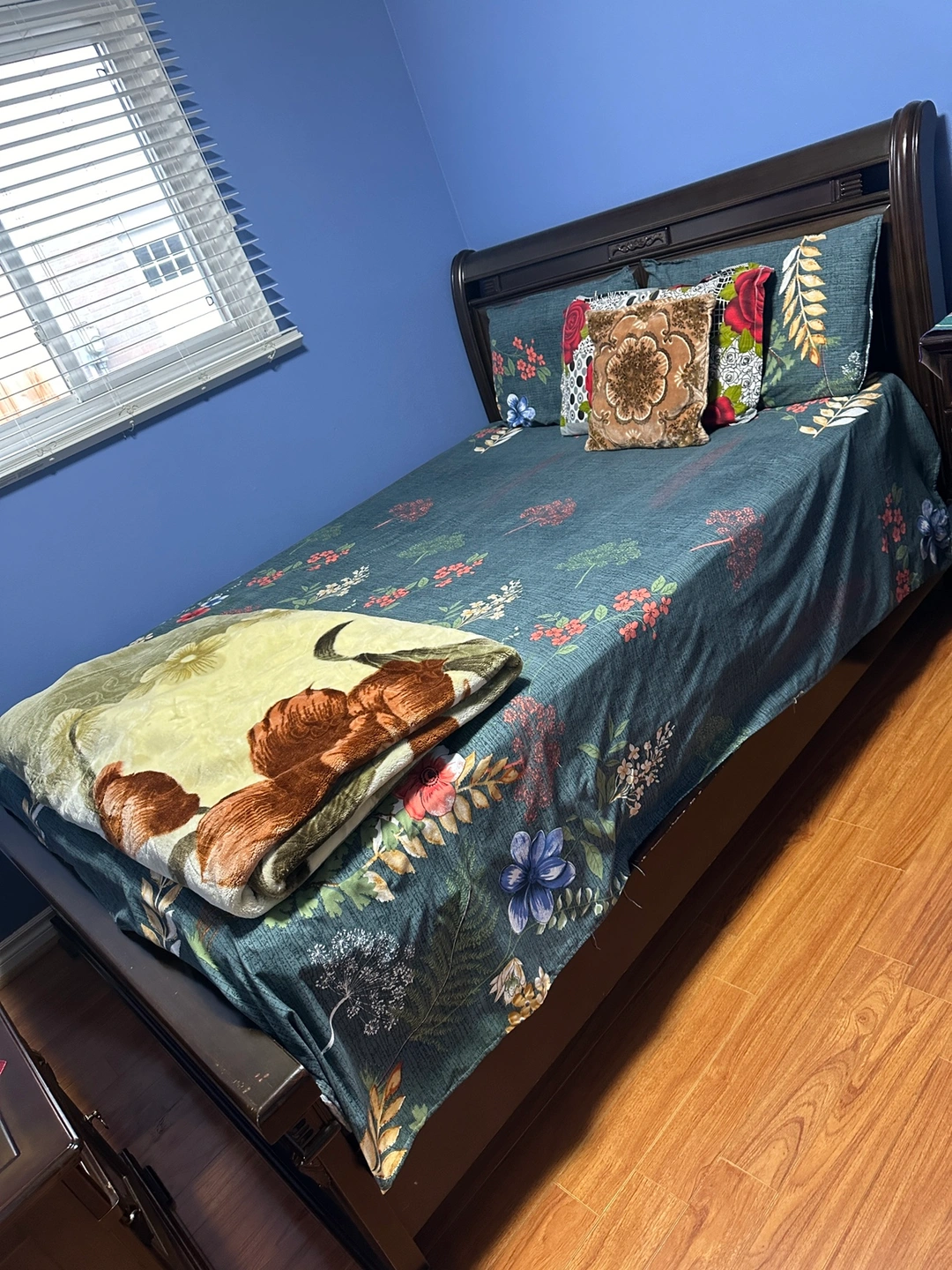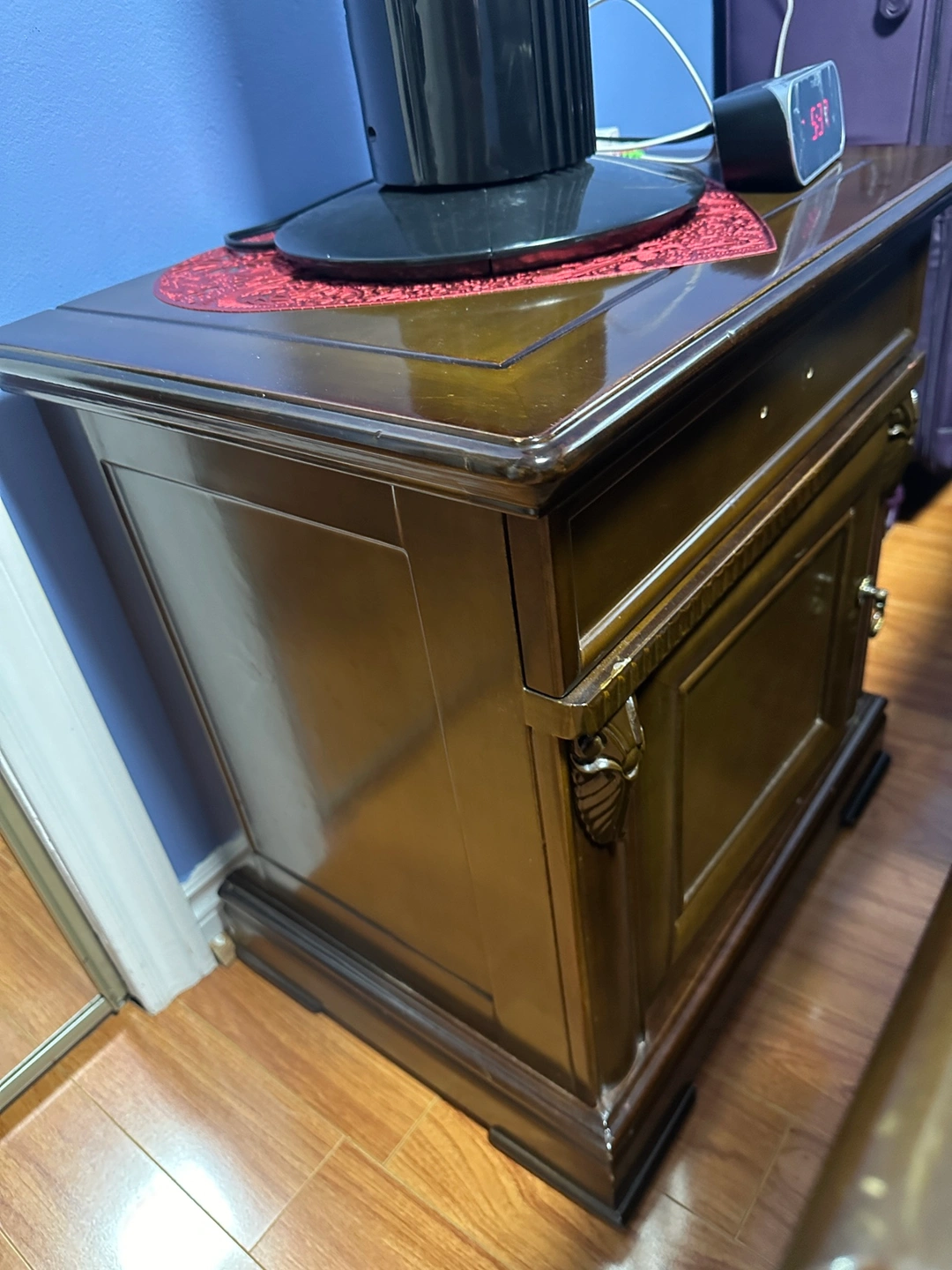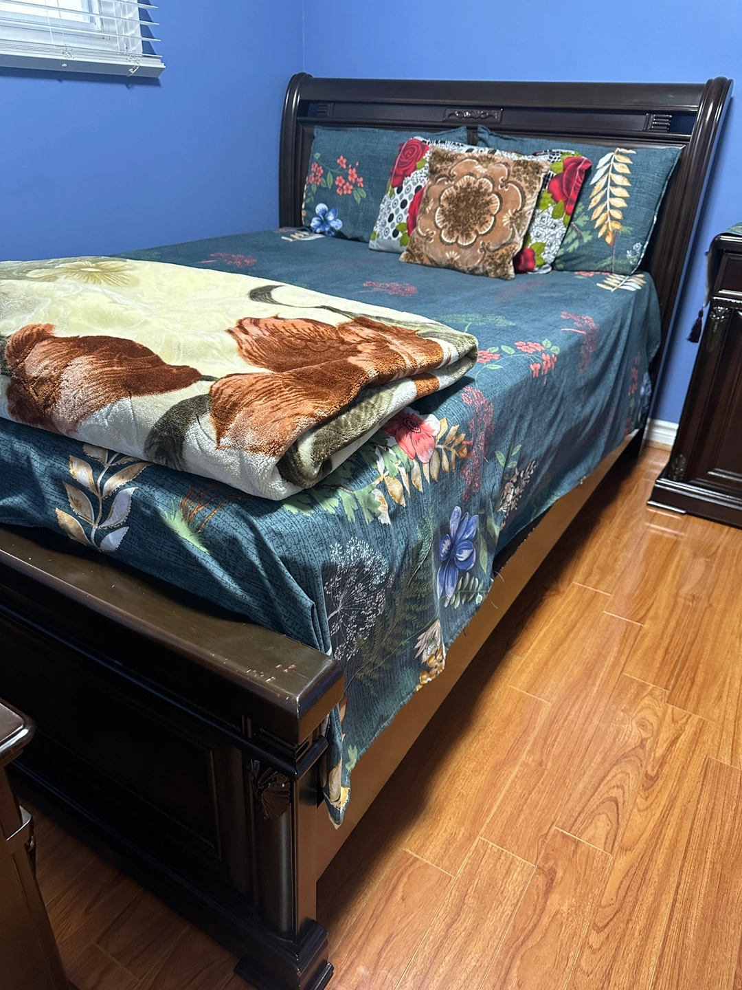 100Goreway/Brandongate 2 Night tables $150 22”W,16”D,23”H Dresser-mirror $180 51.5”W,20”D,32”H Queen bed $250 Solid wood firm prices A beautiful set of bedroom furniture. There is one dresser and two matching nightstands. The nightstands have one drawer each and a door. The furniture is in excellent condition with no scratches