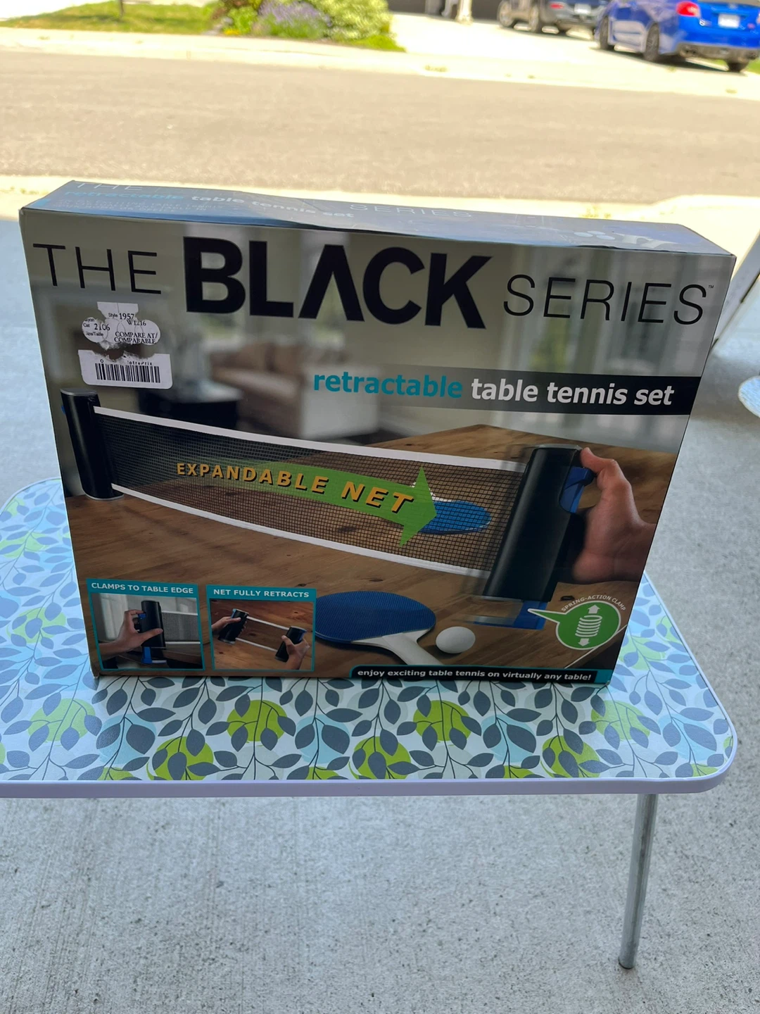 This is The Black Series retractable table tennis set. It features an expandable net that clamps to any table edge and fully retracts. Enjoy exciting table tennis on virtually any table!