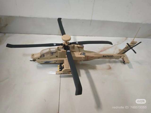 Lego Compatible Large AH-64 Apache building block set. Original brand release of the 259-piece AH-64 Apache model. It has many custom moulded parts for a brick model. Brand new sealed in original box. 259 pieces, 47.3cm x 37.6cm x 18.1cm. Excellent design and quality fit. If you are looking for an even more realistic look, a thin coat of clear flat spray paint is recommended. Two-Seated Cockpit & Iconic Nose Art. 360° Rotatable Main Rotor & tail rotor. Detachable Gun Pods & Hellfire Missiles. Photos 4-5 show the assembled model. Cash only. If the ad is up, it's still available. Check out my other listings for other military building block models for sale.