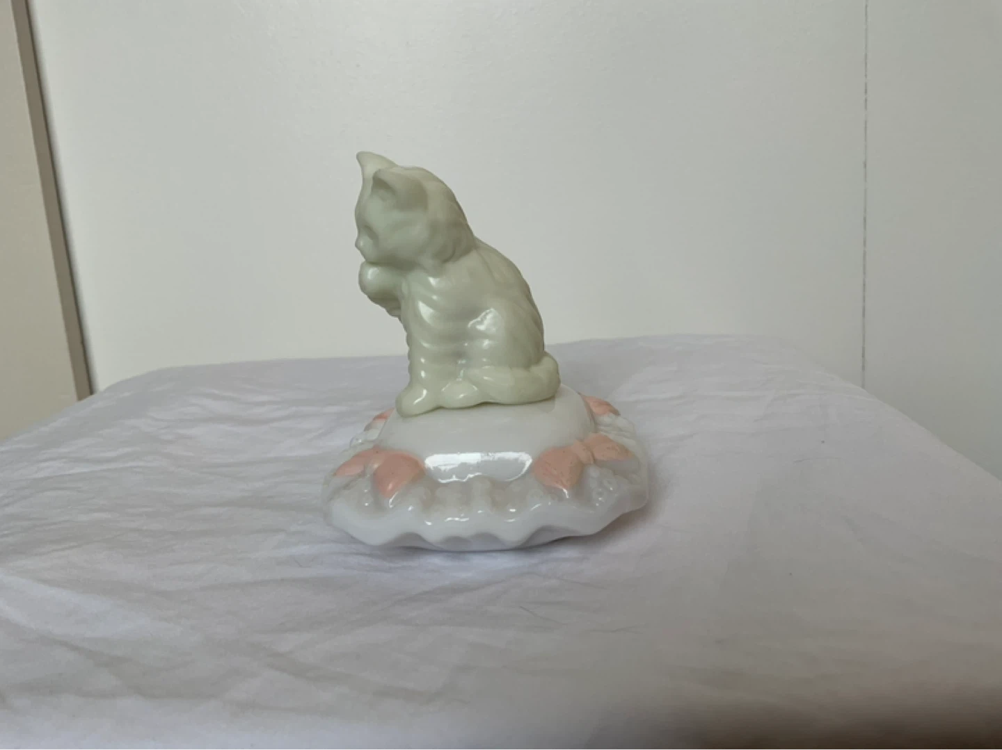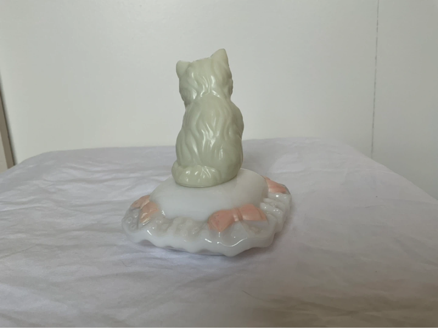 Milk glass pillow contains full bottle of Here’s my Heart cologne with label. Like new condition. Marine Drive and Kerr area. Cash only.