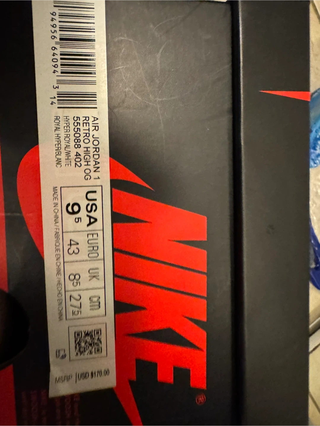 REP Selling a pair of Nike Air Jordan 1 Retro High OG in the Hyper Royal colourway. They are a size 9.5 US. The box is included!