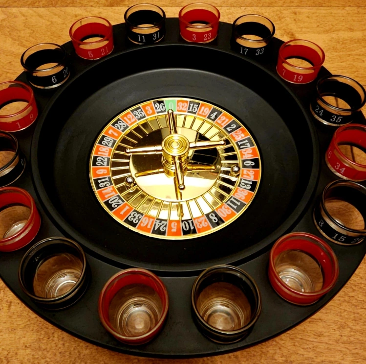 76Looking to add some fun to your next gathering? This Drinking Roulette game set is just the ticket! It includes: - 1 Roulette wheel (12" diameter) - 16 shot glasses - 2 metal roulette balls Get ready for a night of laughs and good times!