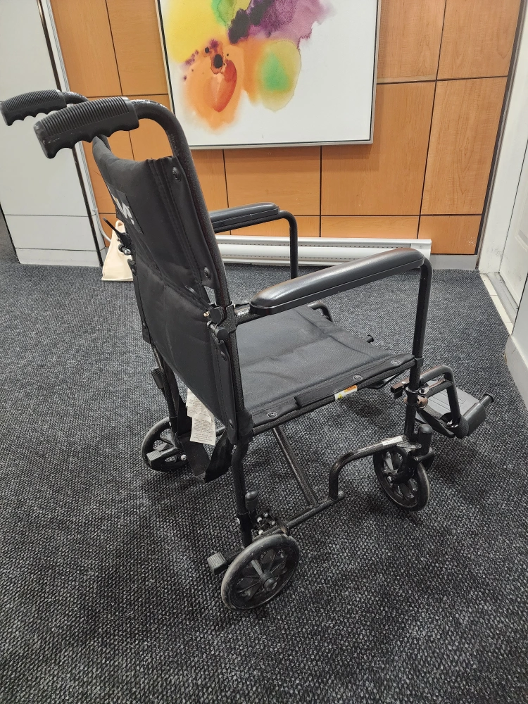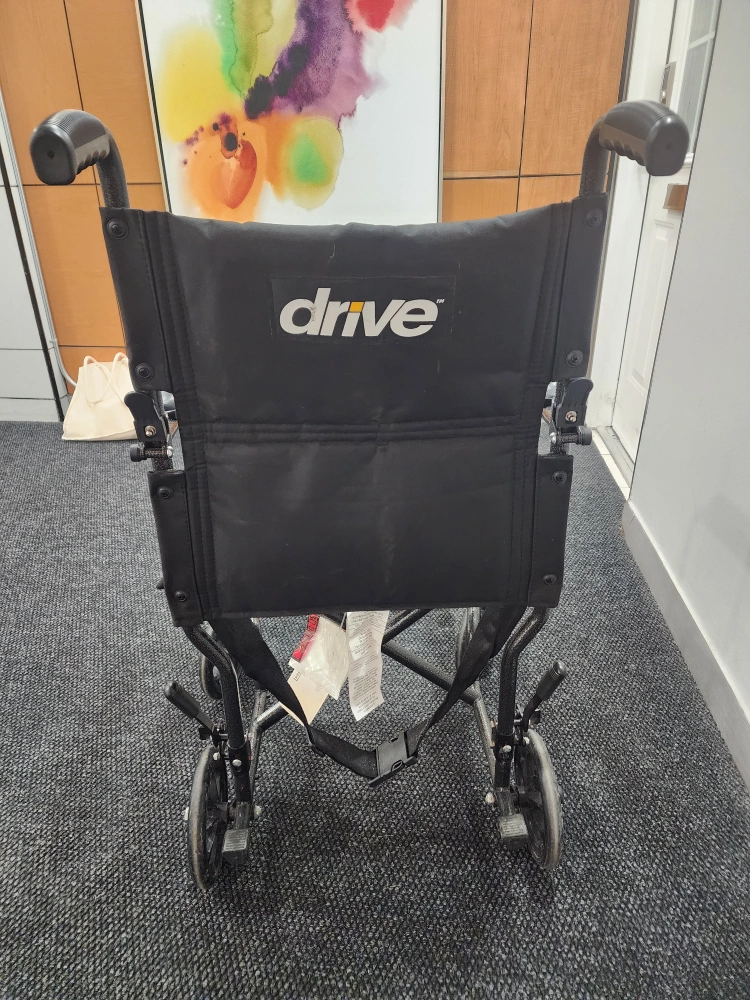 Selling a Drive brand lightweight transport wheelchair. It's in good condition and ready to help someone get around. The chair is black and folds up for easy storage and transport.