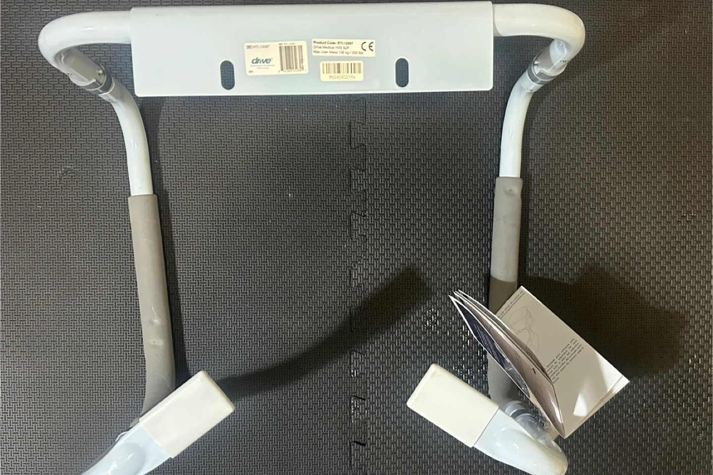 Selling a Drive Toilet Safety Rail in white. It's in good condition Great to provide stability for people who need support Price is firm Meet up around Fairview Mall