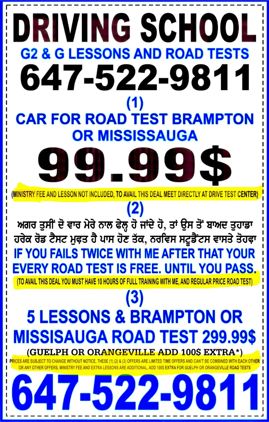 0✅ Offering driving lessons and road tests. Contact 647-522-9811 for more details! ✅ Car for Road Test Brampton or Mississauga for 99.99$ ✅ Car Lesson G2 or G 40$ for 45 minutes