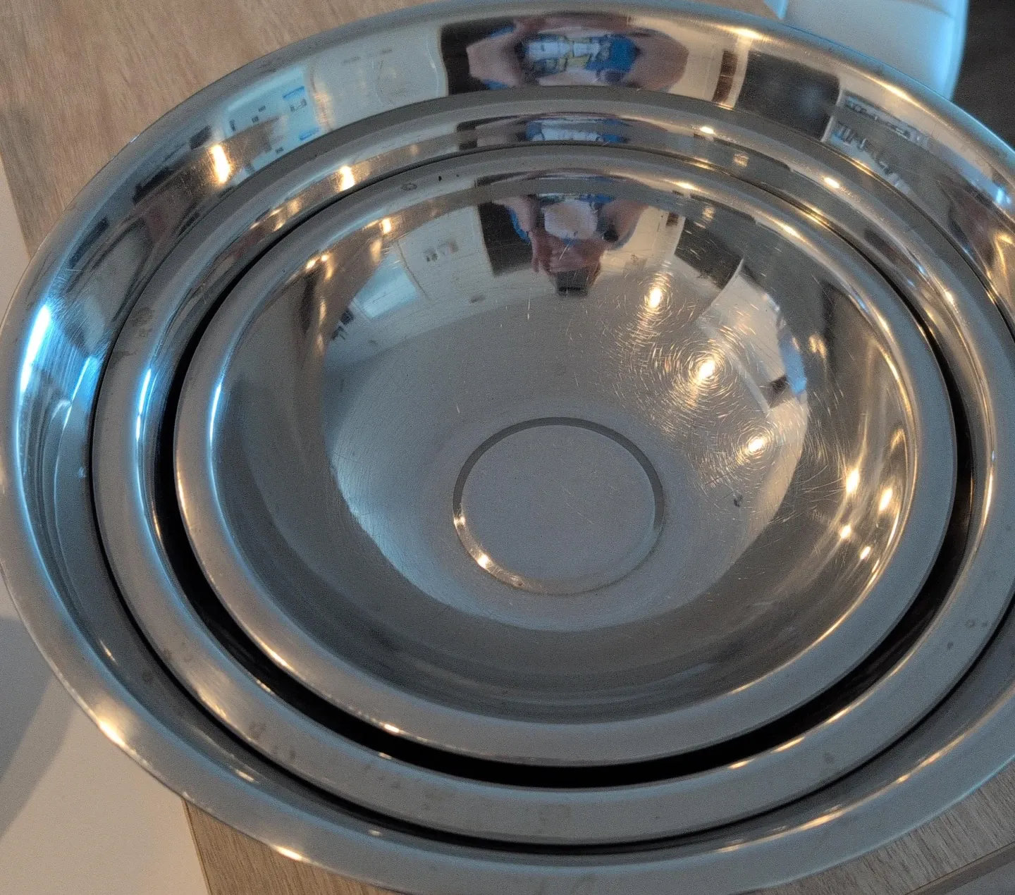Set of three stainless steel mixing bowls. They're durable and easy to clean. Dishwasher safe. Great condition.