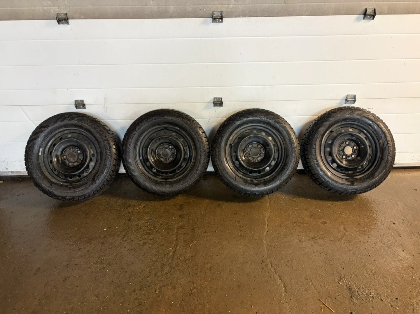 4 winter tires on rims. Avalanche Brand. All in good condition, tires hold air and have lots of tread left on them!