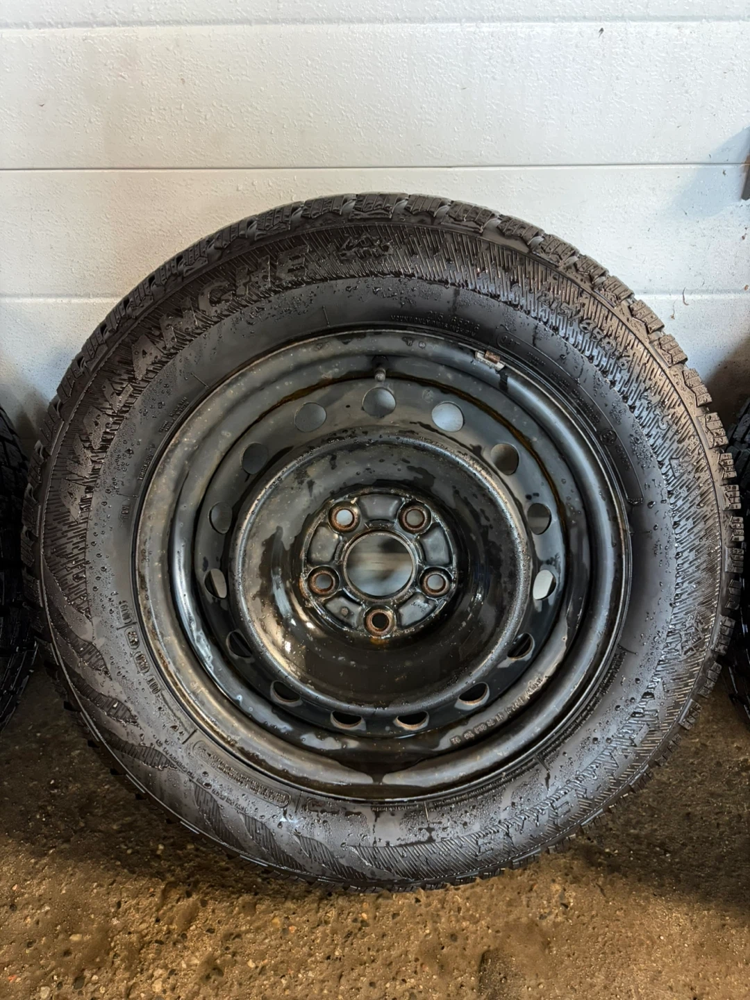 4 winter tires on rims. Avalanche Brand. All in good condition, tires hold air and have lots of tread left on them!