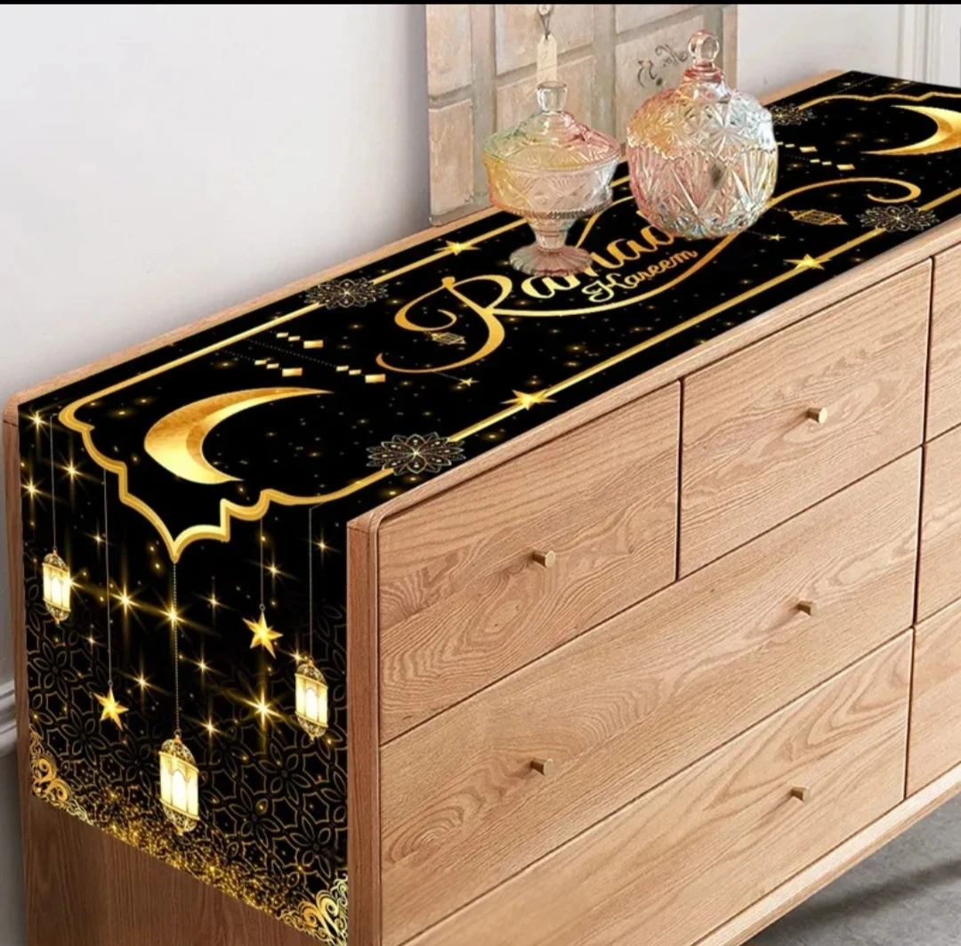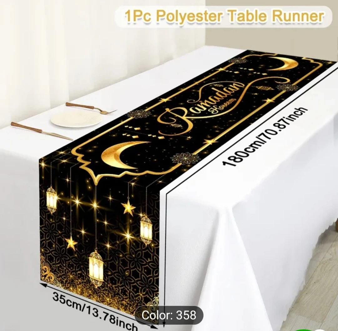 Adds festive flair to your dining space with this Ramadan Kareem table runner. Polyester material. Size is 180cm/70.87 inches long and 35cm/13.78 inches wide.